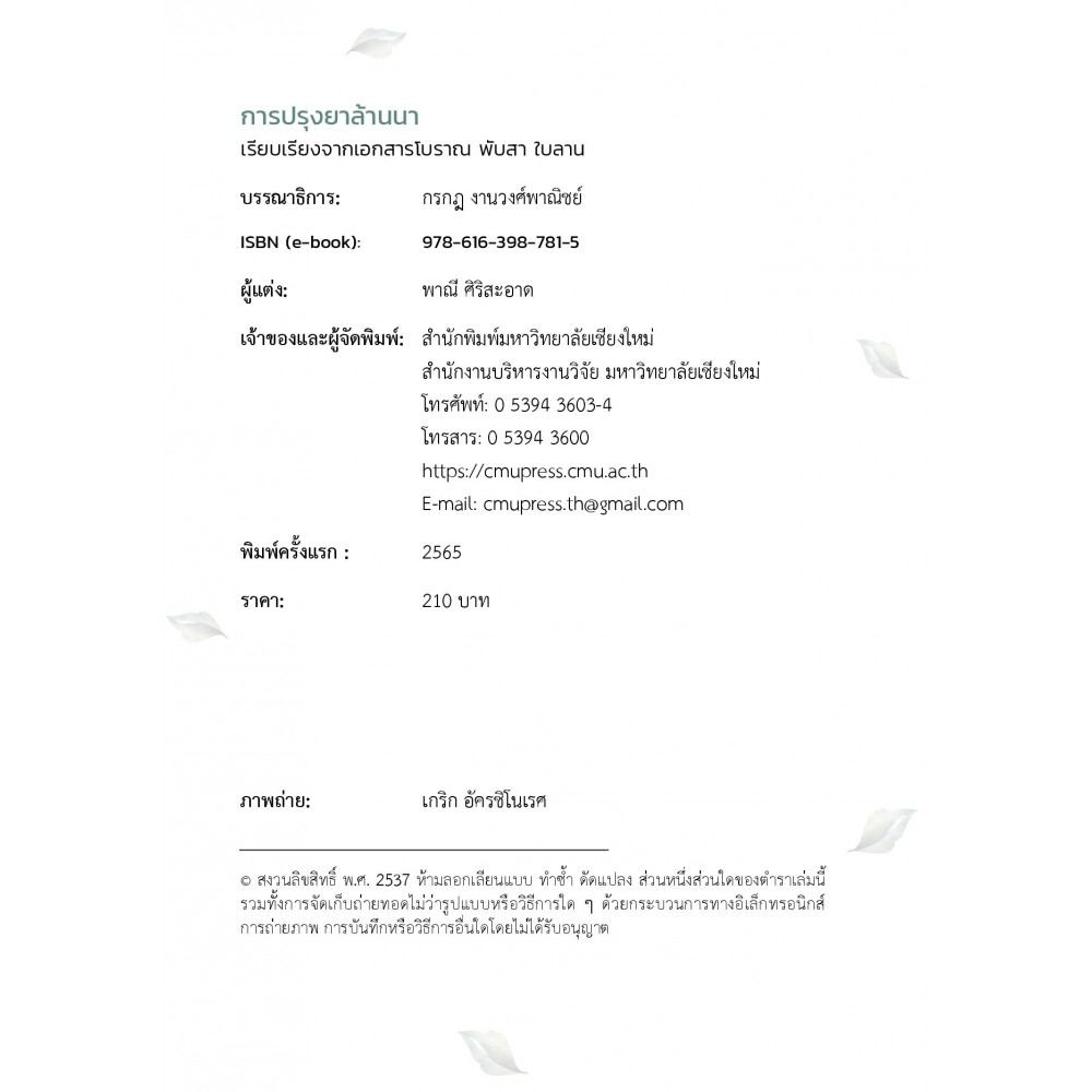 สำนักพิมพ์ : CHIANG MAI UNIVERSITY PRESS