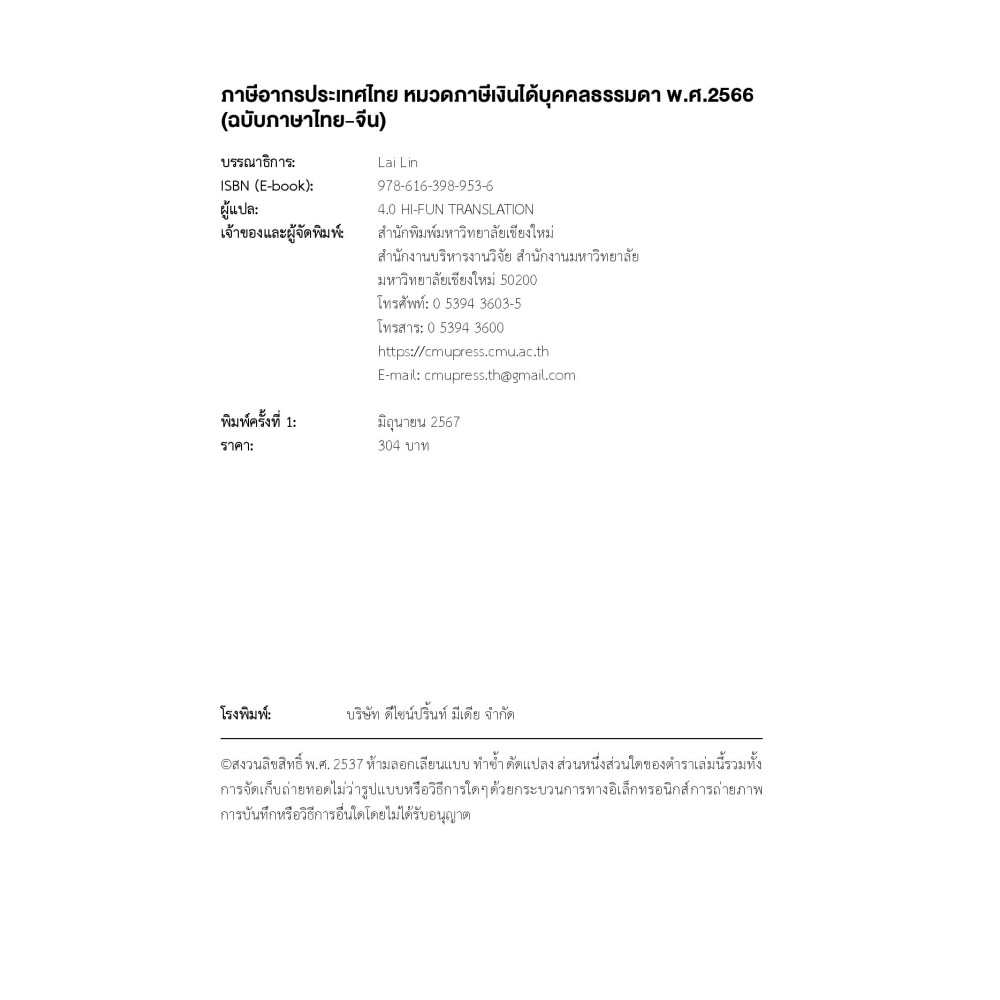 หนังสือภาษีอากรประเทศไทย หมวดภาษีเงินได้บุคคลธรรมดา พ.ศ.2566 ฉบับภาษาไทย-จีน ได้รวบรวมข้อมูลเกี่ยบกับภาษีไว้หลากหลาย