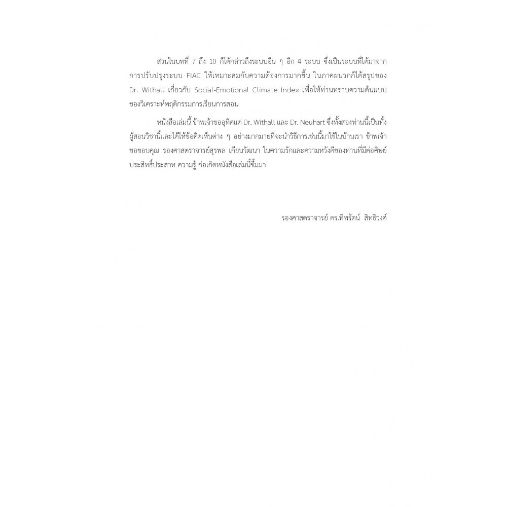 การวิเคราะห์พฤติกรรมการเรียนการสอน จะมีคุณค่าต่อครูและนักศึกษาครูที่ประสงค์จะพัฒนาประสิทธิภาพของการสอนให้ดีขึ้น หากครูหรือนักศึกษาครูนำวิธีการนี้มาใช้กับการสอนของตนเอง จะสามารถทราบพฤติกรรมและวิเคราะห์พฤติกรรมการสอนที่ส่งผลต่อการรับรู้และเรียนรู้ของผู้เรียนได้ การวิเคราะห์พฤติกรรมการเรียนการสอนจึงเปรียบเสมือนกระจกเงาส่องดูตนเอง เพื่อใช้ปรับปรุงและพัฒนาการเรียนการสอน หนังสือเล่มนี้จะเป็นประโยชน์ทั้งครูและนักศึกษาครู รวมทั้งผู้ที่เกี่ยวข้องในการจัดประสบการณ์วิชาชีพทางการศึกษาในเชิงประเมินผลการฝึกประสบการณ์วิชาชีพครู เป็นเครื่องมือในการวิจัยที่ก่อให้เกิดระบบและแนวความคิดใหม่ให้มีประสิทธิภาพและการยอมรับที่กว้างขวางยิ่งขึ้น