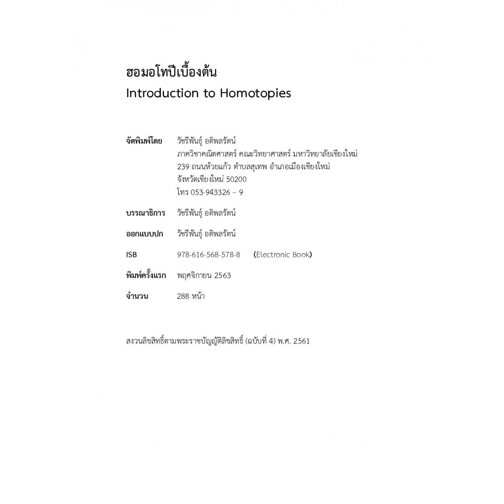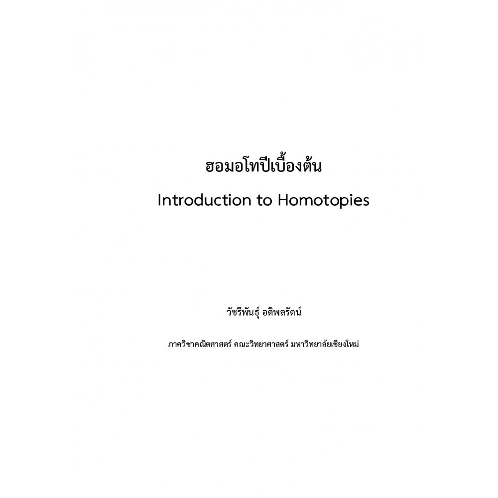 เนื้อหาในหนังสือเล่มนี้เหมาะสำหรับผู้อ่านทั่วไปที่มีความสนใจในทฤษฎีฮอมอโทปี ซึ่งเป็นเนื้อหาในวิชาคณิตศาสตร์ที่มีพื้นฐานมาจากวิชาทอพอโลยี โดยอาศัยความรู้ทางพีชคณิตนามธรรมมาร่วมศึกษาด้วย โดยในหนังสือเล่มนี้จะมีเนื้อหาในส่วนของความรู้พื้นฐานของวิชาสองวิชาที่กล่าวมาแล้วให้พอสมควร และจมีคำอธิบายที่ค่อนข้างละเอียด ตัวอย่างที่เข้าใจง่าย รวมถึงคำแนะนำสำหรับหนังสืออ่านประกอบอยู่ด้วย สิ่งนี้ทำให้เนื้อหาในหนังสือเล่มนี้เหมาะเป็นอย่างยิ่งสำหรับผู้อ่านที่ยังไม่มีพื้นฐานในทฤษฎีฮอมอโทปี ตลอดจนถึงผู้อ่านยังไม่มีความรู้พื้นฐานในทอพอโลยี และพีชคณิตนามธรรม ทั้งนี้ สำหรับผู้อ่านที่มีพื้นฐานข้างต้นเป็นที่เรียบร้อยแล้ว สามารถอ่านที่บทที่ 3 ทฤษฎีฮอมอโทปีได้เลยเพื่อเป็นการประหยัดเวลาโดยหากมีข้อสงสัยเกี่ยวกับความรู้พื้นฐานที่จำเป็นต่างๆก็สามารถอ่านทบทวนในบทก่อนหน้าหรือผนวกเพื่อศึกษาเพิ่มเติมเมื่อต้องการได้ ทั้งนี้เนื้อหาในหนังสือเล่มนี้จะถูกเรียบเรียง 3 บทด้วยกัน ดังนี้ บทที่ 1 ทอพอโลยี จะมีอธิบายความรู้พื้นฐานในวิชาทอพอโลยีที่จำเป็นต่อการศึกษาทฤษฎีฮอมอโทปีที่จะถูกกล่าวถึงในบทที่ 3 ความรู้พื้นฐานดังกล่าวจะเริ่มต้นตั้งแต่อธิบายความหมายของทอพอโลยี เซตเปิด เซตปิด ฐานหลัก ฐานหลักย่อย ฟังก์ชันต่อเนื่องจนถึงปริภูมิแบบต่างๆที่จะมีการกล่าวถึงในบทสุดท้าย