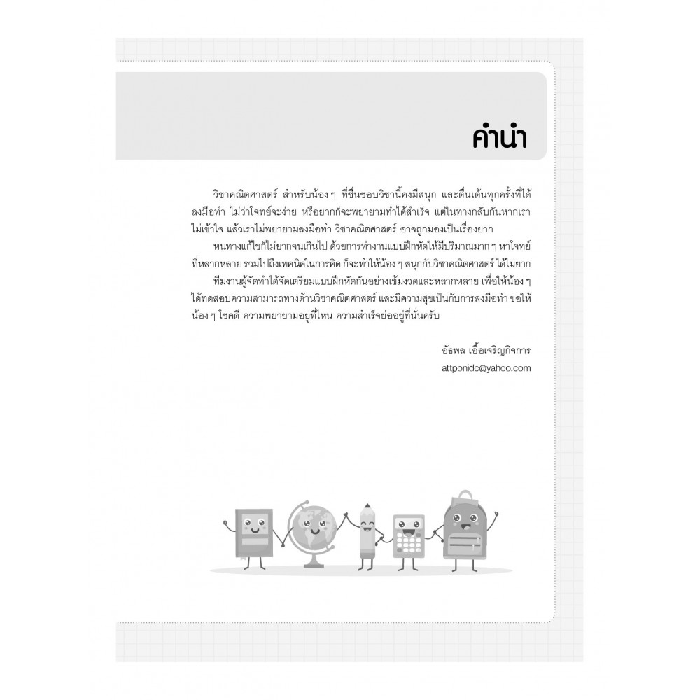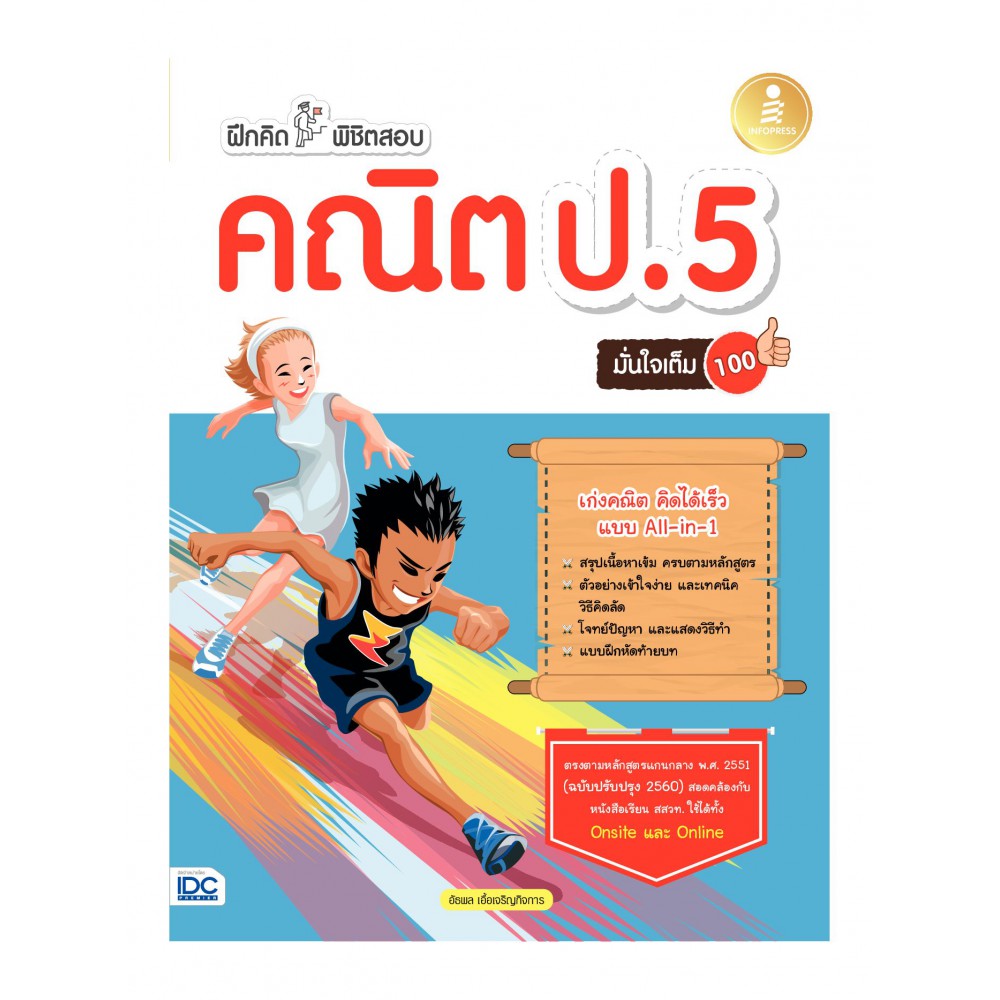 สรุปเนื้อหาวิชาคณิตศาสตร์ระดับชั้น ป.5 ครบถ้วนตามหลักสูตรแกนกลาง พ.ศ. 2551 (ฉบับปรับปรุง 2560) ที่มาพร้อมกับตัวอย่างและวิธีคิดลัดเชื่อมโยงไปสู่การแก้ปัญหาได้อย่างเป็นระบบ เพิ่มโอกาสในการฝึกฝนให้รอบด้านไม่ว่าจะเป็น หลักคิด การคำนวน และการตีโจทย์ปัญหาด้วยแบบฝึกหัดที่หลากหลาย เสริมความเข้าใจให้มากกว่าด้วยแนวข้อสอบท้ายบท และมาพร้อมกับเฉลยแยกเล่ม ที่ช่วยให้สะดวกต่อการฝึกฝนด้วยตนเองพร้อมคำอธิบายละเอียดช่วยให้เข้าใจได้มากขึ้น