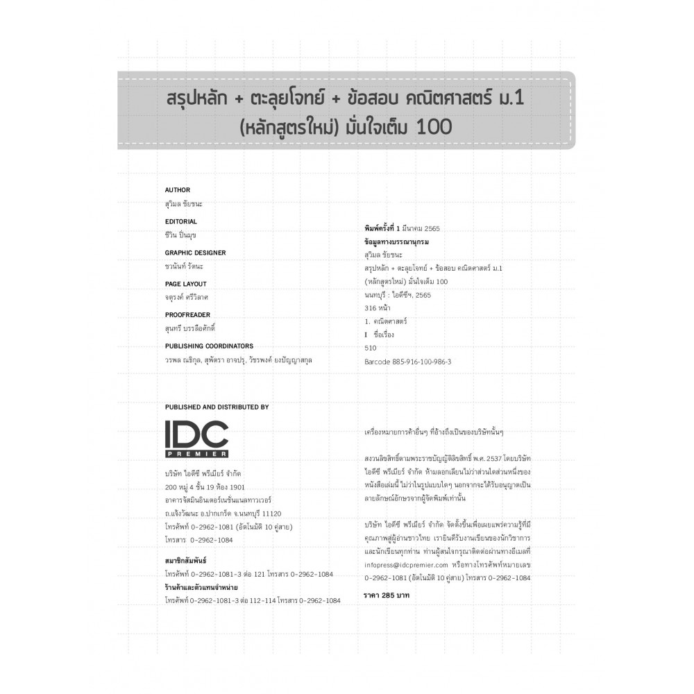 สรุปหลัก+ตะลุยโจทย์+ข้อสอบ คณิตศาสตร์ ม.1 (หลักสูตรใหม่) มั่นใจเต็ม 100