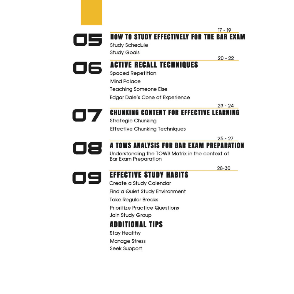 Bar Exam Starter Tips is a collection of proven strategies, insightful tips, and motivational messages from successful lawyers who have been through the same journey. This guide will help you develop the right mindset, study smarter, and tackle the most challenging aspects of the Bar exam with confidence. Whether you're just starting your Bar review or looking for last-minute advice, this books is your essential companion for success.