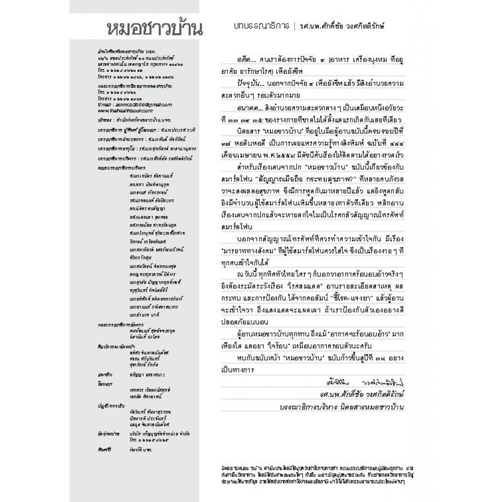 นิตยสารหมอชาวบ้านเป็นหนังสือสุขภาพประจำทุกครอบครัว ที่ได้นำเสนอคุณภาพเนื้อหาที่ถูกต้องมาเป็นระยะเวลากว่า 35 ปี เหมาะกับทุกเพศทุกวัยที่รักสุขภาพและการป้องกัน : หมอชาวบ้าน
