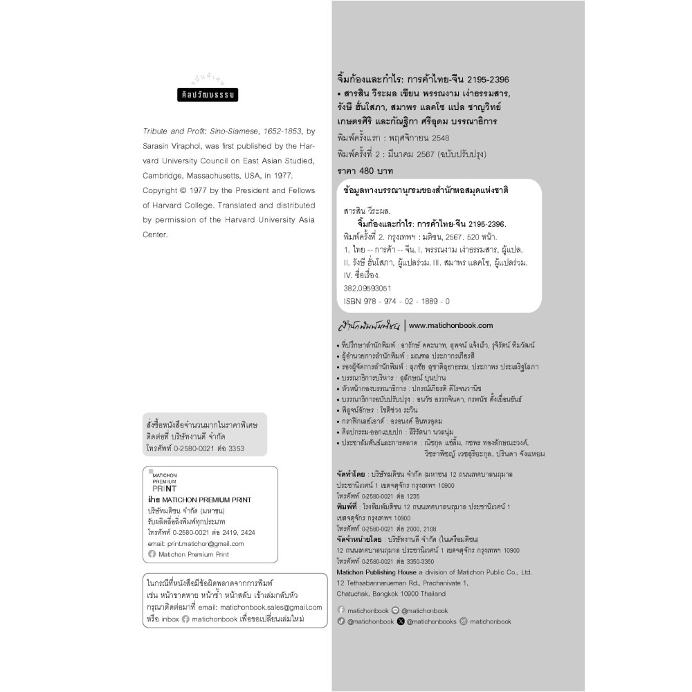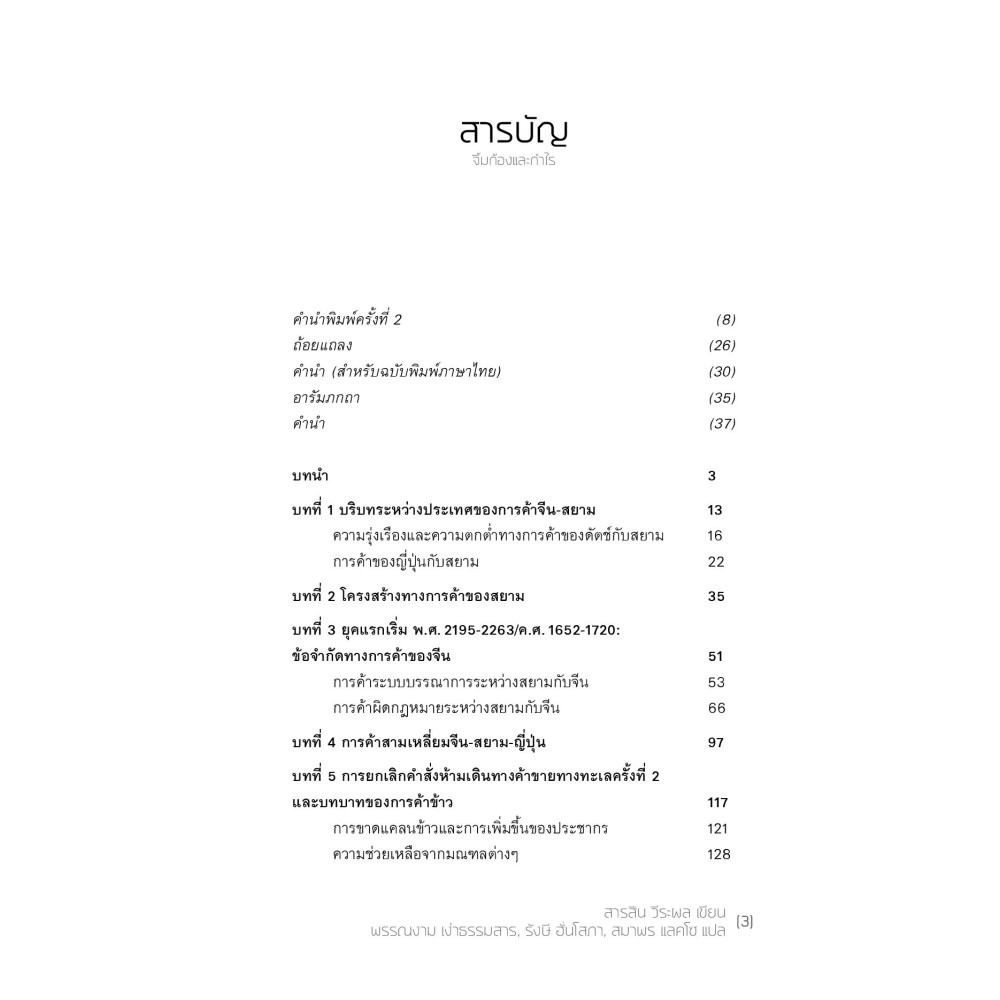จิ้มก้องและกำไร: การค้าไทย-จีน 2195-2396 เล่าเรื่องประวัติศาสตร์การทูต-การค้าระหว่างไทย-จีนยุคปลายอยุธยา-ต้นรัตนโกสินทร์ ฉายภาพโครงข่ายการค้าเรือสำเภาในยุคโบราณที่เชื่อมโยงเศรษฐกิจการค้าของบ้านเมืองต่างๆ ทั่วภูมิภาค สร้างความเปลี่ยนแปลงทางเศรษฐกิจอย่างมหาศาล