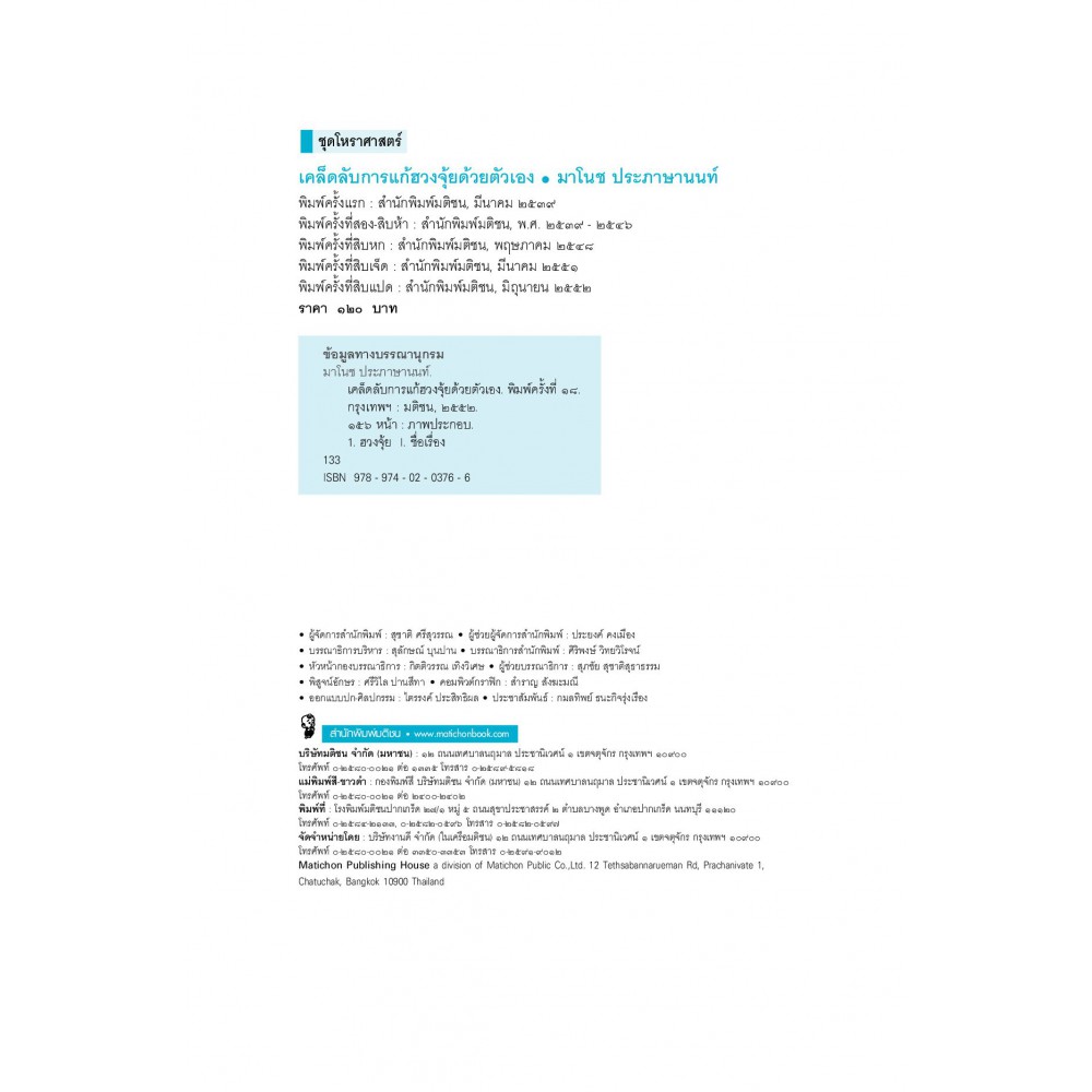พบกับเคล็ดลับการแก้ไขบ้านและสถานที่ทำงานที่ผิดลักษณะฮวงจุ้ย ปรับจากร้ายให้กลายเป็นดี ถ่ายทอดจากประสบการณ์ตรงของผู้เขียน และจากตำราฮวงจุ้ยหลายสำนักที่เกี่ยวกับการแก้ไขฮวงจุ้ย ในเล่มเต็มไปด้วยเรื่องราวที่เป็นปัญหาที่มักพบบ่อยในชีวิตประจำวัน พร้อมแนวทางแก้ไขอย่างเป็นลำดับขั้นตอน โดยมีภาพประกอบชัดเจน ช่วยให้คุณเข้าใจง่าย สามารถศึกษาและปรับแก้ได้ด้วยตนเอง