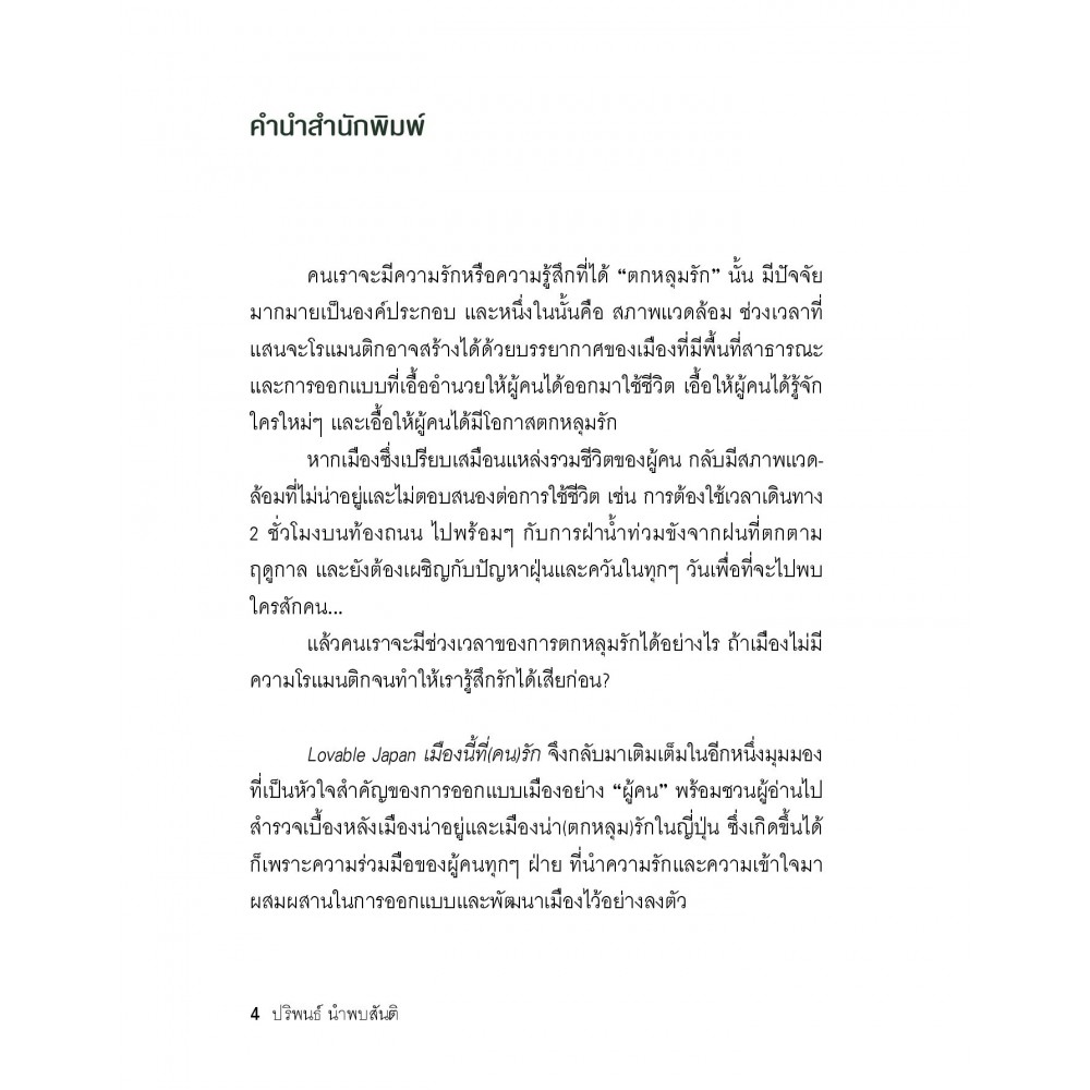 เล่าเบื้องหลังการออกแบบเมืองของญี่ปุ่น ด้วยความร่วมมือจากใจที่เต็มไปด้วยรัก ความร่วมมือเป็นกุญแจสำคัญที่ช่วยให้เราเผชิญปัญหาที่รายล้อมอยู่ได้ เช่นเดียวกันกับเรื่อง “เมือง” ที่จำเป็นต้องถูกวางแผนและออกแบบมาอย่างเข้าใจในวิถีชีวิตของผู้คน ชวนสำรวจความร่วมมือของผู้คนทุกภาคส่วน ซึ่งถือเป็นหัวใจสำคัญและทำให้เมืองในญี่ปุ่นกลายเป็นเมืองที่ดี เป็นเมืองที่ใครๆ ก็อยากจะรัก และเป็นเมืองที่ผู้คนอยากจะก้าวเท้าออกจากบ้านมาใช้ชีวิตอย่างมีความสุข