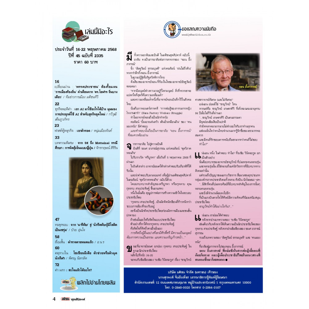มติชนสุดสัปดาห์ ฉบับ 2335 (วันที่ 16-22 พฤษภาคม 2568)