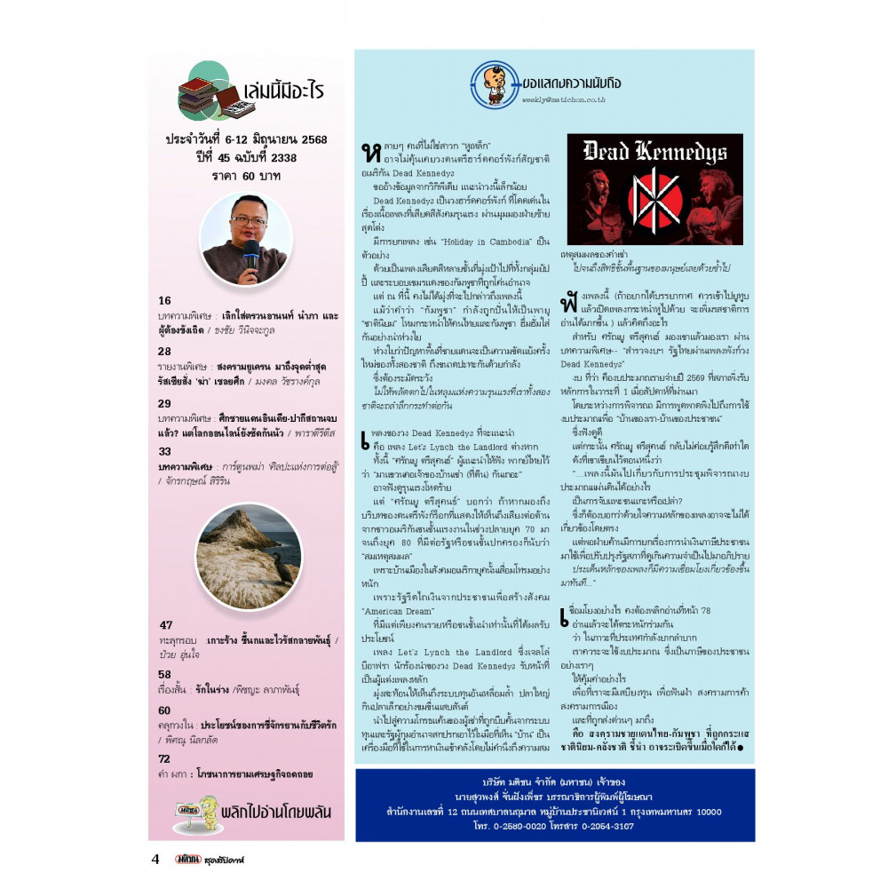 มติชนสุดสัปดาห์ ฉบับประจําวันที่ 6-12 มิถุนายน 2568 ปีที่ 45 ฉบับที่ 2338