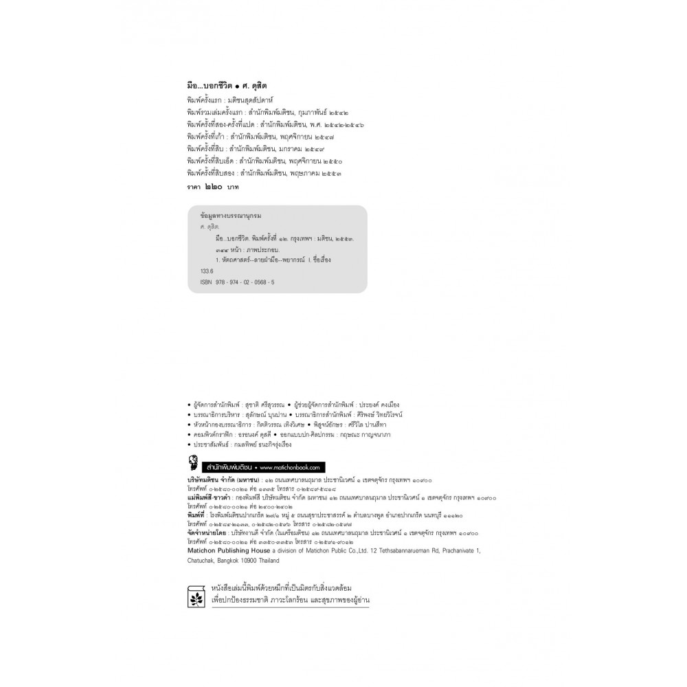 ตำราดูเส้นลายมือที่แม่นยำ อ่านง่าย และเชื่อถือได้มากที่สุด ได้รับความนิยมอย่างสูงสุดมาแล้วในมติชนสุดสัปดาห์