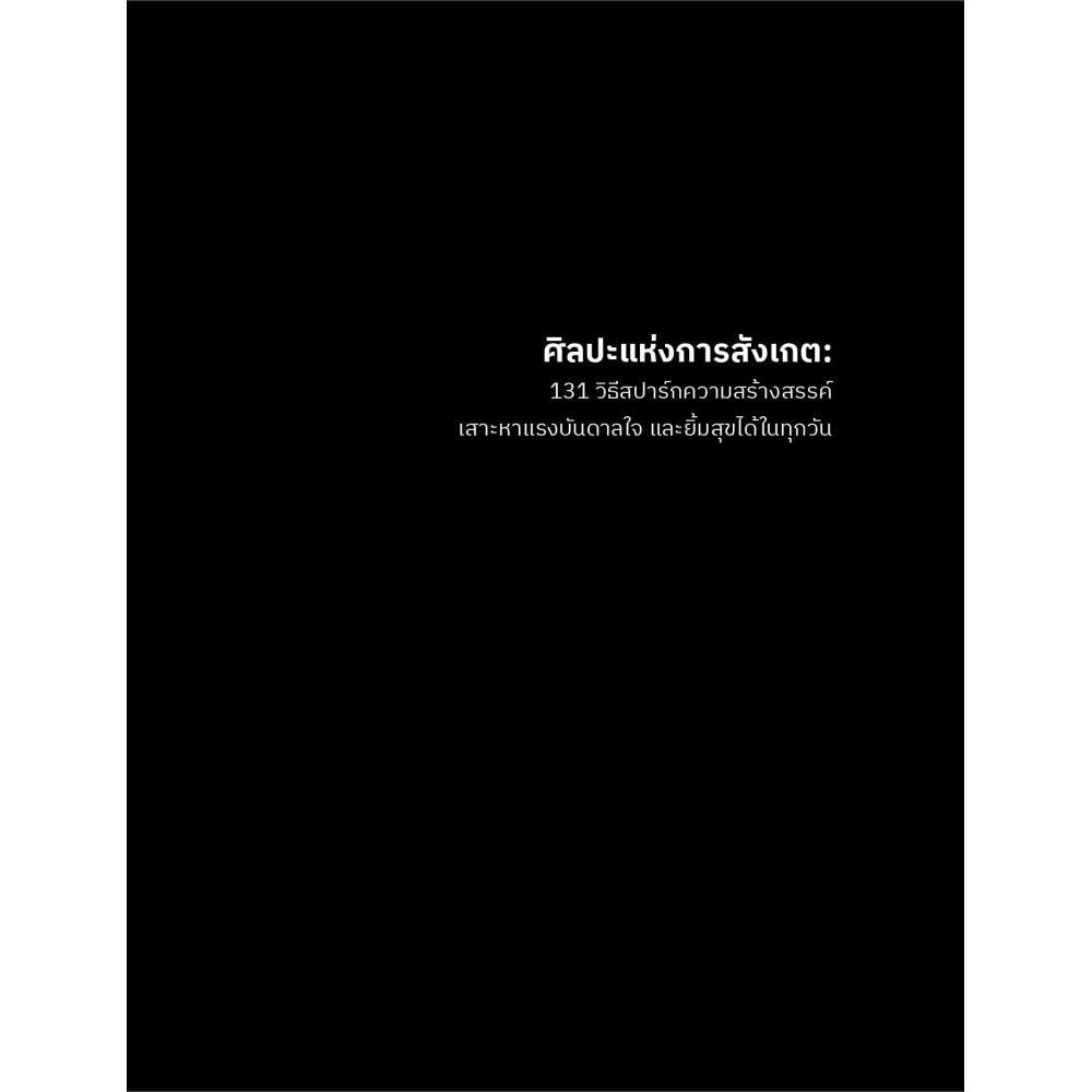 ในยุคที่ดิจิทัลเข้ามามีบทบาทในทุกภาคส่วนของชีวิต สิ่งล่อตาล่อใจมากมายล้วนมีปฏิสัมพันธ์กับสมาธิเราตั้งแต่ตื่นเช้ายันเข้านอน ชวนให้ไขว้เขว ใจฟุ้งซ่าน รับรู้สิ่งตรงหน้าลดลง หนังสือเล่มนี้จะช่วยให้คุณ รู้จักปล่อยวาง มีสติรู้กับปัจจุบัน สร้างกรอบความคิด จุดประกายแรงบันดาลใจจากสิ่งรอบกาย ใส่ใจความสัมพันธ์กับคนรอบข้างโดยไม่หลงลืมใส่ใจตัวเอง มาปรับเปลี่ยนโลกทัศน์ วางอุปกรณ์สี่เหลี่ยม แล้วหัดเป็น “นักสังเกตโลกที่ดี” ไปพร้อมๆ กันเถอะ!