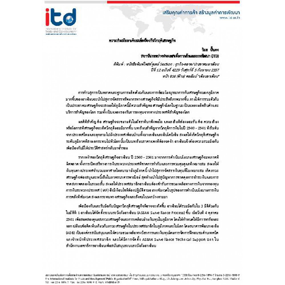 บทความวิจัยของสถาบันระหว่างประเทศเพื่อการค้าและการพัฒนา ITD
