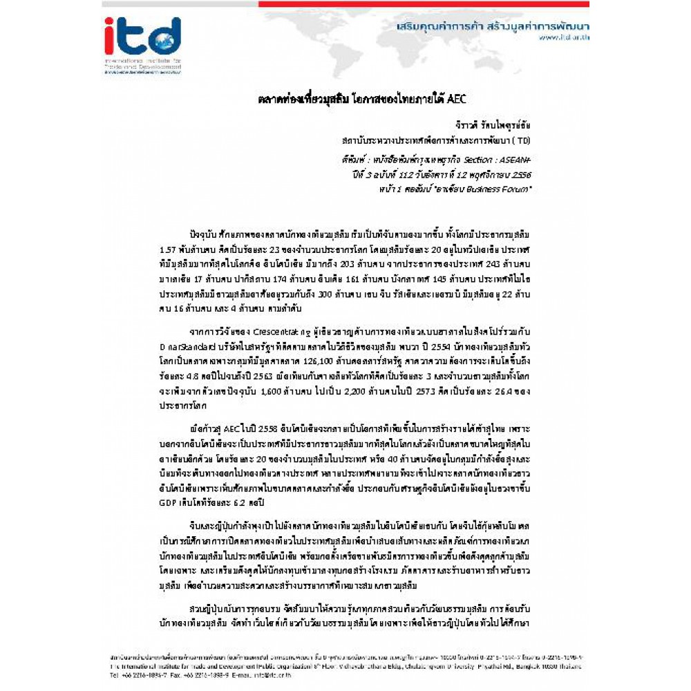 ตลาดท่องเที่ยวมุสลิม โอกาสของไทยภายใต้ AEC