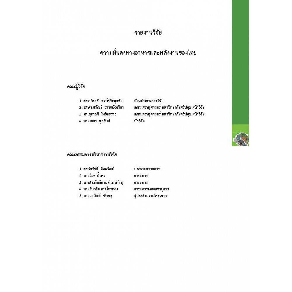 ความมั่นคงทาง อาหารและพลังงานของไทย