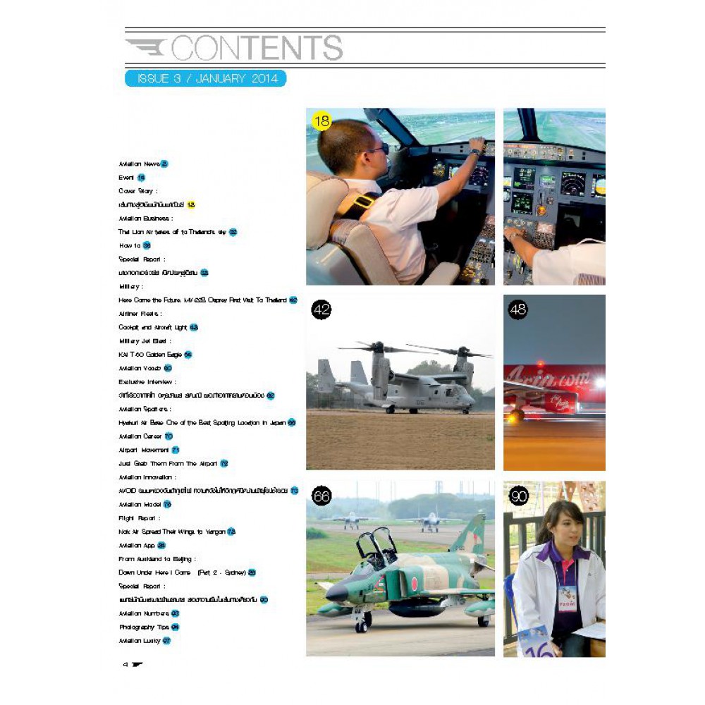 นิตยสารด้านการบินภาษาไทย ที่ทำให้ผู้อ่านได้สัมผัสทุกเรื่องในแวดวงการบินง่ายยิ่งขึ้น ครอบคลุมเนื้อหาทั้งการบินพาณิชย์ การบินทหารและการบินทั่วไป พร้อมเกร็ดความรู้เกี่ยวกับบทบาทอาชีพต่าง ๆ ในอุตสาหกรรมการบิน