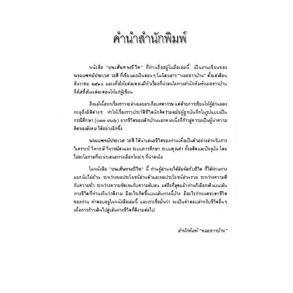 หนังสือ "บนเส้นทางชีวิต" เป็นงานเขียนของ "นายแพทย์ ประเวศ วะสี" ที่เขียนลงเป็นตอนๆ ในนิตยสาร "หมอชาวบ้าน" ตั้งแต่เดือนธันวาคม 2530 โ่ดยนำเสนอชีวิตของท่านเพื่อเป็นตัวอย่างเป็นกรณีศึกษา จากชีวิตของเด็กบ้านนอกคนหนึ่งที่ก้าวสู่ความเป็นผู้นำความคิดของสังคมได้