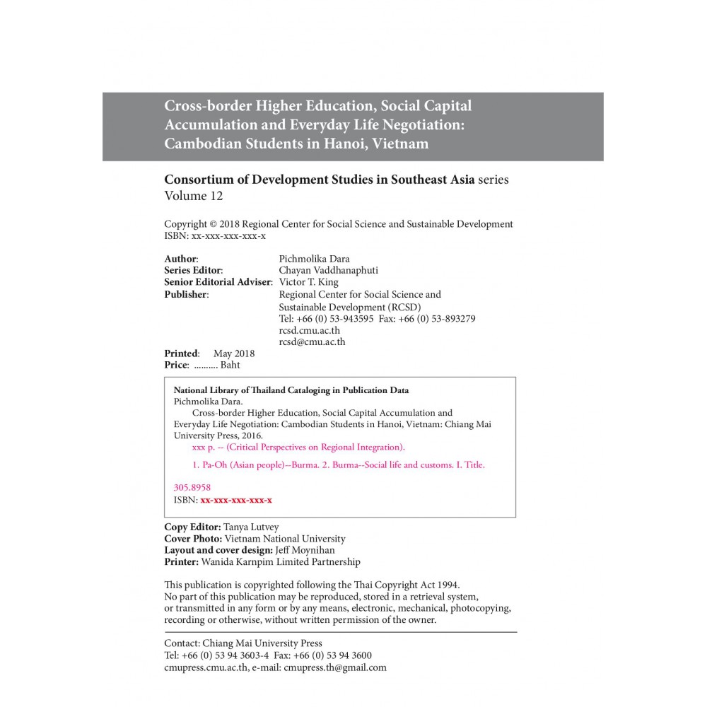 Cross-Border Higher Education, Social Capital Accumulation and Everyday Life Negotiation: Cambodian Students in Hanoi, VietnamIn the era of globalization and increased consumption of overseas higher education, many countries around the world have been seeking opportunities to reform their countries’ economic and educational policies so as to reduce poverty. Cambodia is no exception. It is necessary for Cambodia to strive for international cooperation and support in order to effectively improve their higher education system. Sending students to study at higher education in foreign countries is one effective strategy adopted by the Cambodian government to gain knowledge and expertise from other countries. When it comes to overseas education, developed countries such as the United States of America, Australia, Singapore and/or European countries are often the first destinations to be considered by Cambodian students. However, in recent years, Vietnam has become another option, which has increasingly become prominent in the host list of cross-border higher education for Cambodians and other countries’ nationals in the region.