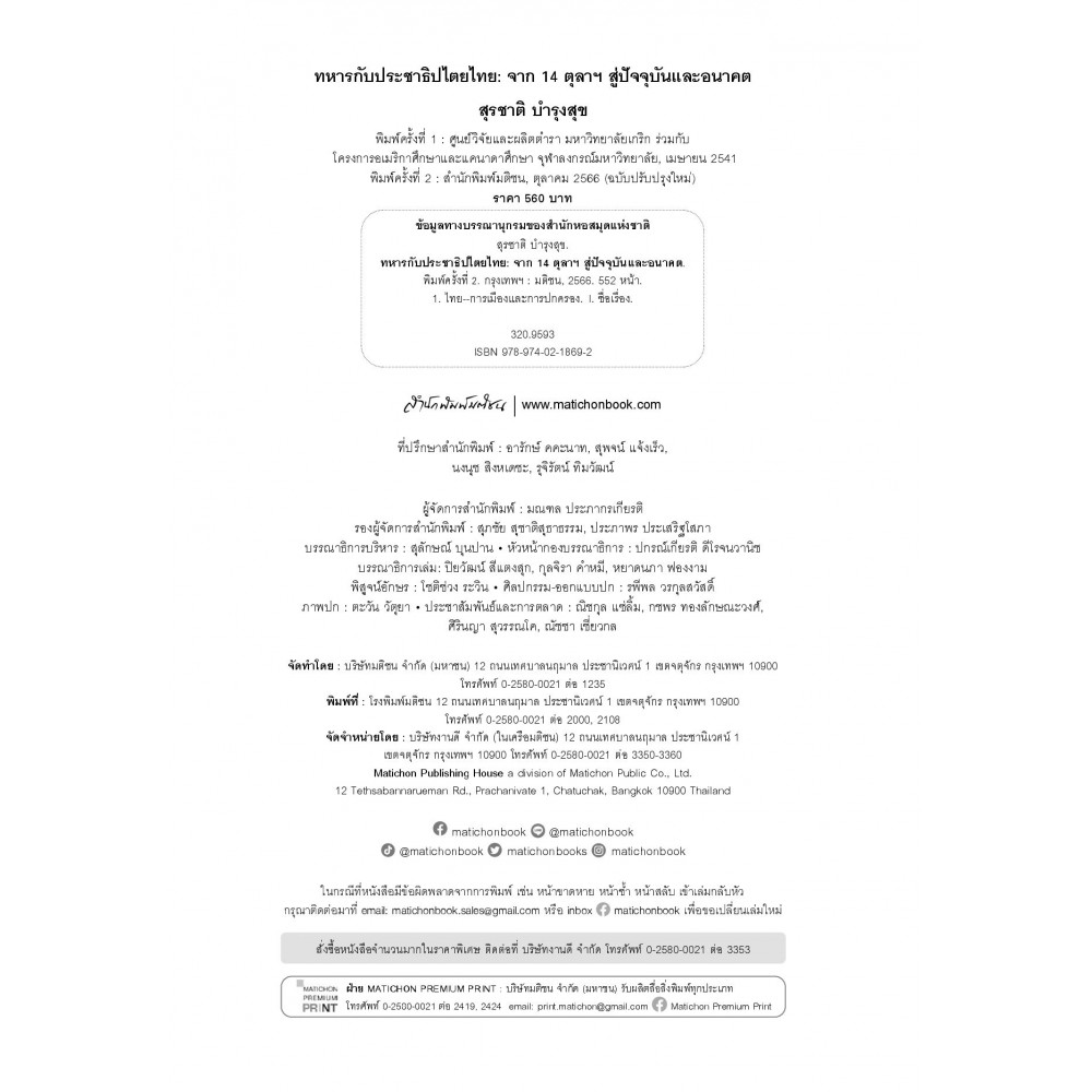 หลัง 14 ตุลาฯ ชัยชนะของประชาชนเบียดขับทหารออกไปจากเวทีการเมืองได้เพียง 3 ปี การรัฐประหารก็กลับมาพร้อมกับทหารและธำรงบทบาทในการเมืองไทยต่อเนื่องยาวนานถึงปัจจุบัน เหตุใดชัยชนะของประชาชนจึงสั้นนัก? และเหตุใดอำนาจทหารจึงอยู่ยาว? สุรชาติ บำรุงสุข จะพาผู้อ่านไปหาคำตอบ โดยย้อนกลับไปดูบทบาทของทหารตั้งแต่ทศวรรษ 2500 สำรวจความคิดของนายทหารในยุคสมัยแห่งการเปลี่ยนผ่านทศวรรษ 2510-2520 และการกลับมาของกองทัพหลัง 6 ตุลาฯ ตลอดจนข้อเสนอเรื่องการจัดความสัมพันธ์ระหว่างพลเรือน-ทหารในการเมืองไทย