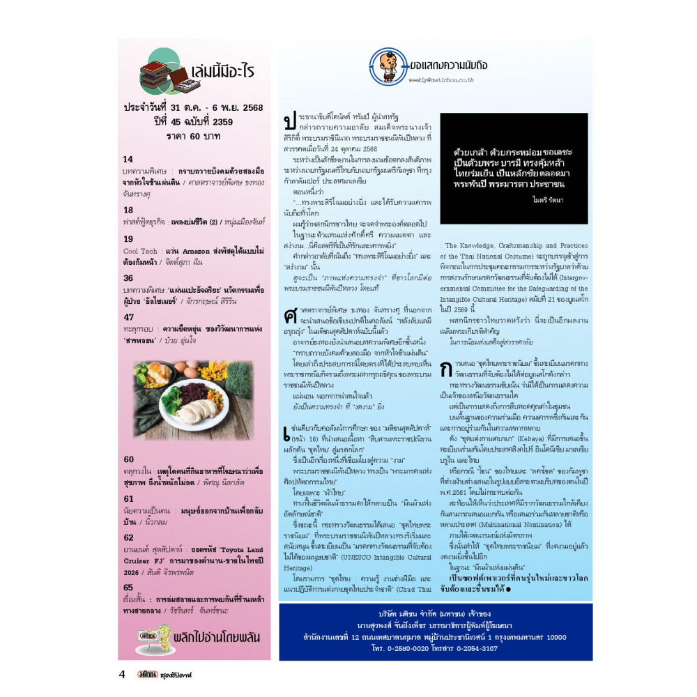 มติชนสุดสัปดาห์ ฉบับ 31 ตุลาคม-6 พฤศจิกายน 2568