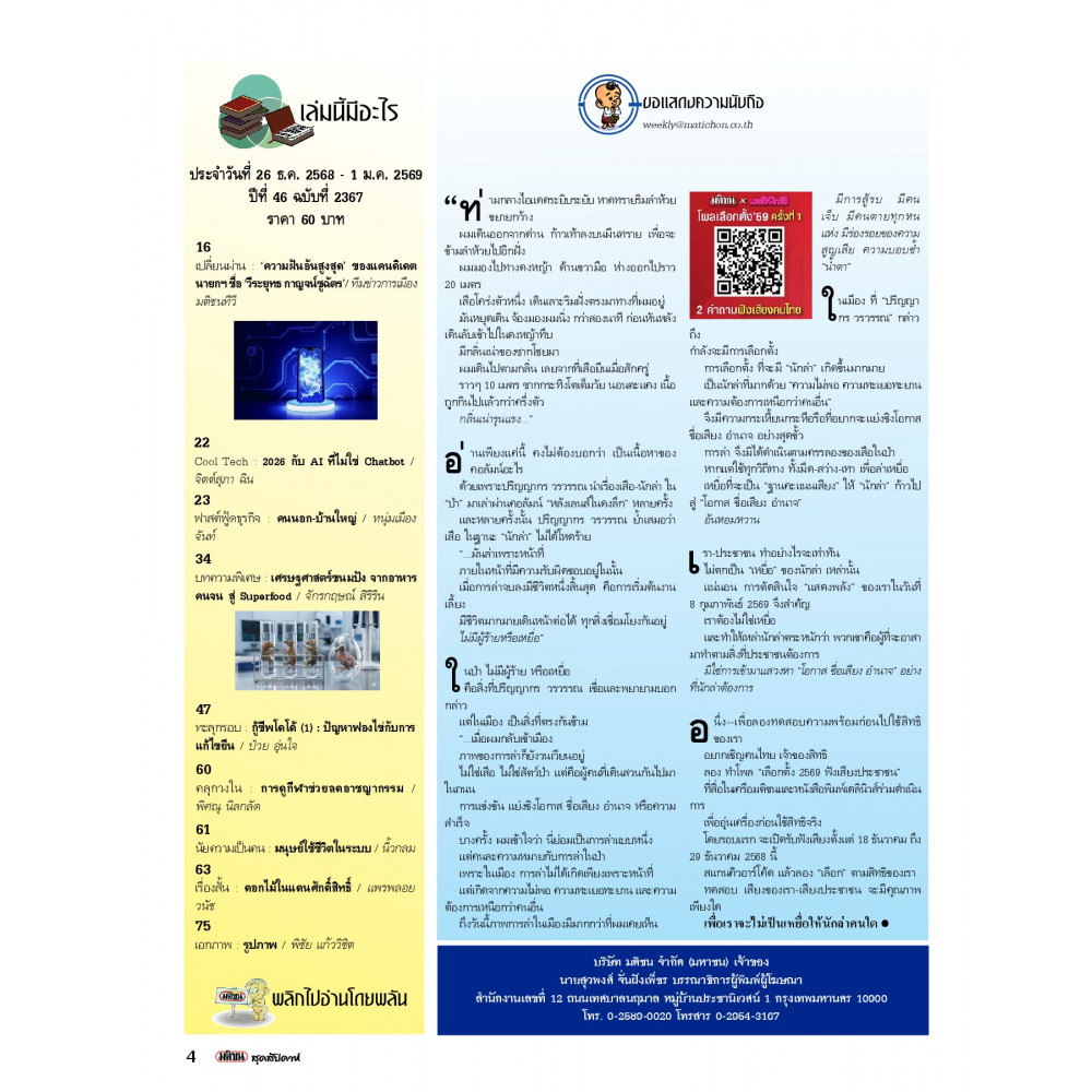 มติชนสุดสัปดาห์ ฉบับ 2367 (วันที่ 26 ธ.ค. 68 - 1 ม.ค. 69)