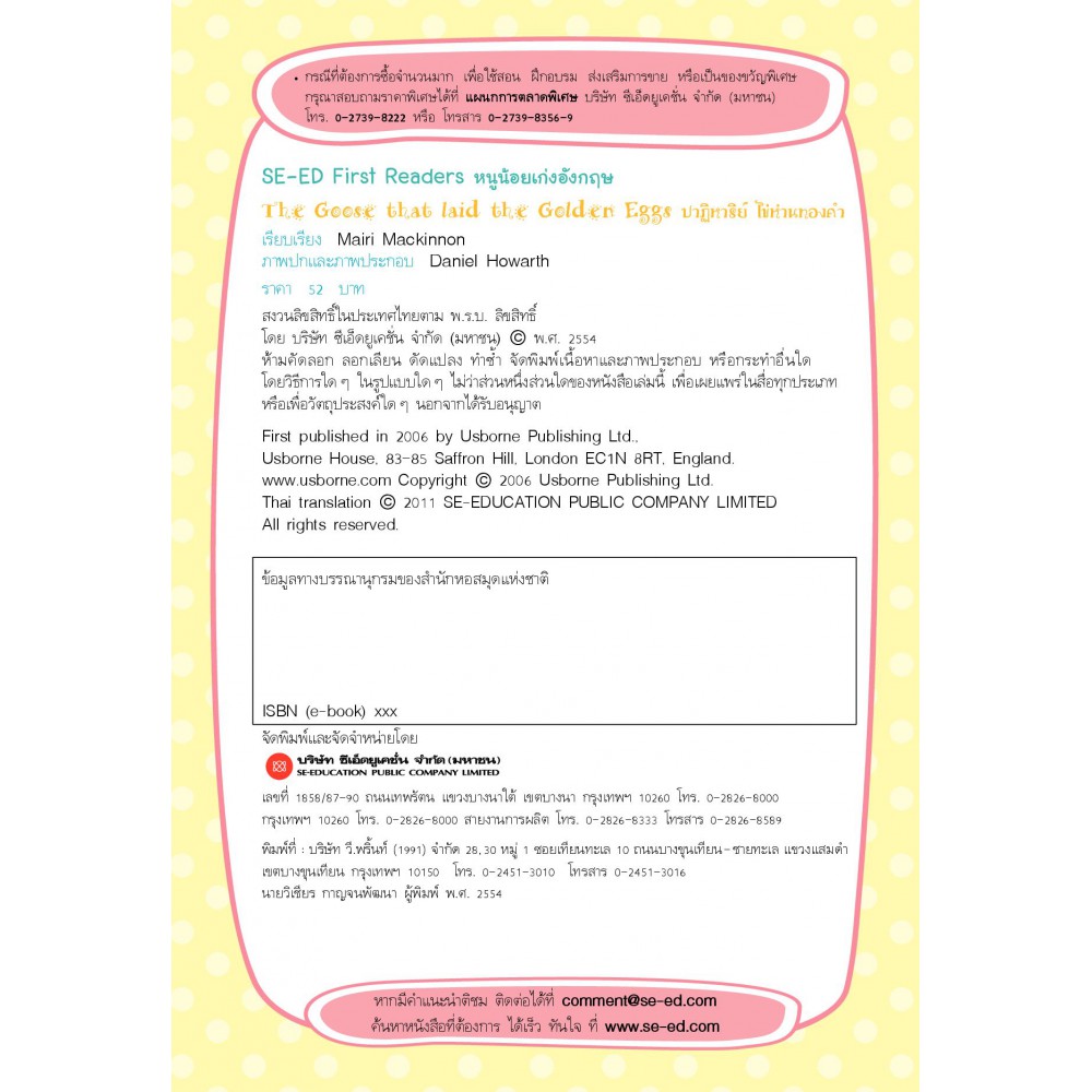 พบกับหนังสืออ่านนอกเวลาภาษาอังกฤษแสนสนุก เรื่องราวของ "ทอม" และ "เอเลน่า" สองสามีภรรยาที่มีฐานะยากจน วันหนึ่ง..พวกเขาพบว่าห่านในฟาร์ม ออกไข่เป็นทองคำทุกเช้า พวกเขาเริ่มร่ำรวย แต่เกิดอะไรขึ้น หากพวกเขาไม่พอใจกับการได้ไข่ทองคำแค่วันละฟอง? ติดตามพร้อมกันได้แล้ว ให้ทั้งความเพลิดเพลินและฝึกฝนภาษาไปพร้อมๆ กันเลยทีเดียว
