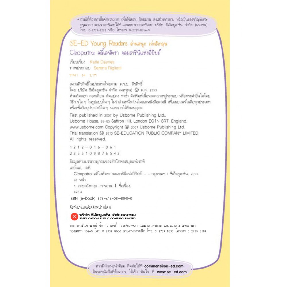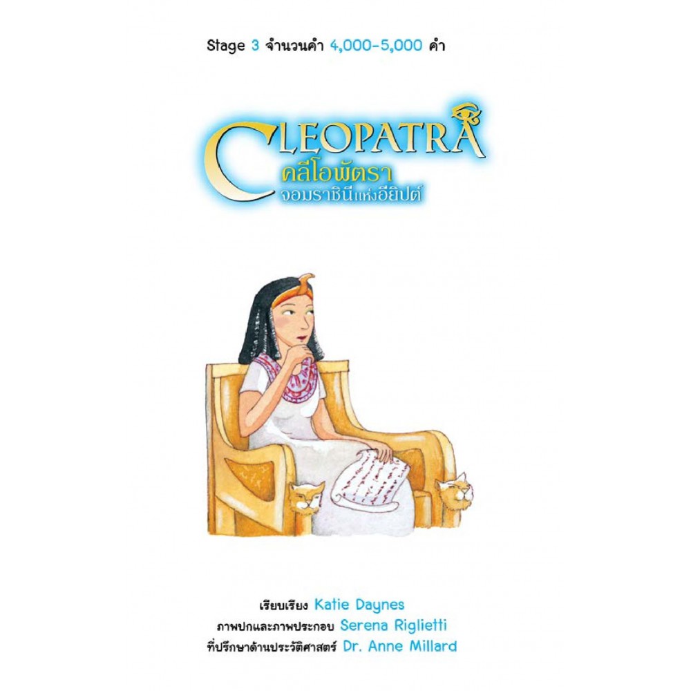 หนังสืออ่านนอกเวลาภาษาอังกฤษแสนสนุกเล่มนี้ จะพาเด็กๆ ย้อนรอยอารยธรรมลุ่มแม่น้ำไนล์ไปพบกับ "คลีโอพัตรา" ราชินีแห่งอียิปต์ ผู้ผจญทั้งศึกรบและศึกรักเพื่อรักษาอาณาจักรเอาไว้ พระนางจะทำเช่นไร เมื่อการเดิมพันครั้งนี้อาจต้องแลกด้วยชีวิต! ติดตามพร้อมกันได้แล้ว ให้ทั้งความเพลิดเพลินและฝึกฝนภาษาไปพร้อมๆ กันเลยทีเดียว