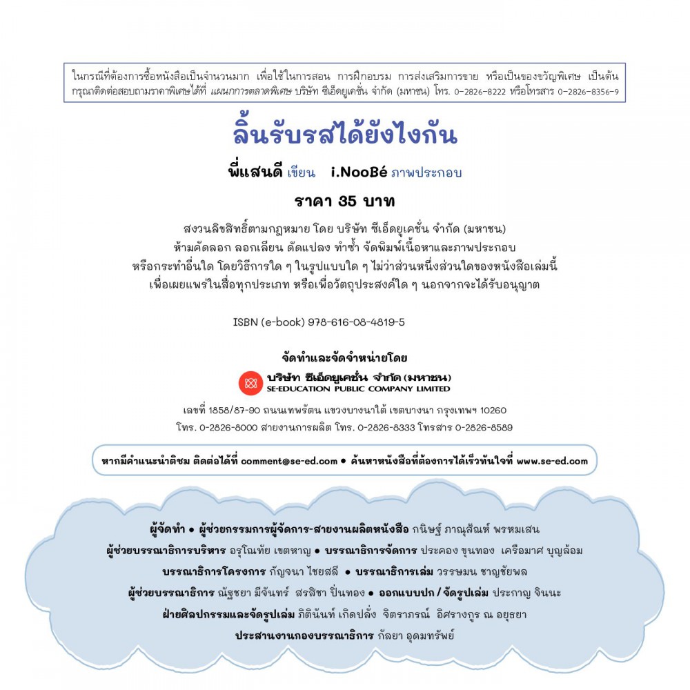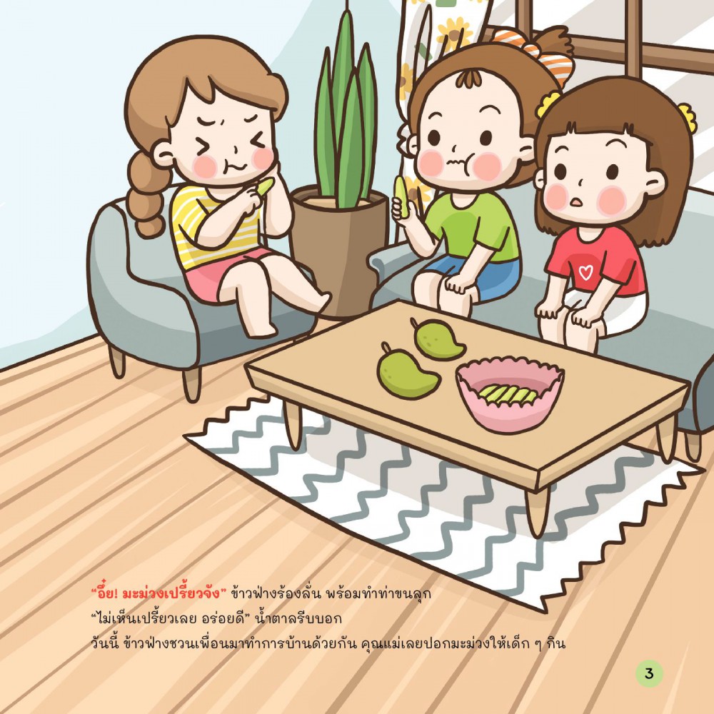 ข้าวฟ่างชวนเพื่อนมาทำการบ้านด้วยกันที่บ้าน แม่เลยปอกมะม่วงให้เด็ก ๆ กิน พอทุกคนได้ชิมมะม่วงกลับบอกรสชาติกันคนละแบบ ข้าวฟ่างบอกเปรี้ยวมาก น้ำตาลบอกไม่เปรี้ยวเลย ส่วนมะปรางบอกเปรี้ยวนิดหน่อย แม่เห็นเด็ก ๆ งุนงงว่าทำไมลิ้นตัวเองรับรู้รสชาติไม่เหมือนกัน เลยมาช่วยไขข้อสงสัย ที่แท้ก็เป็นเพราะตุ่มรับรสบนลิ้นของเรานี่เอง ว่าแต่ตุ่มรับรสหน้าตาเป็นยังไง รับรสอะไรได้บ้าง เล่มนี้บอกไว้หมดเลยละ