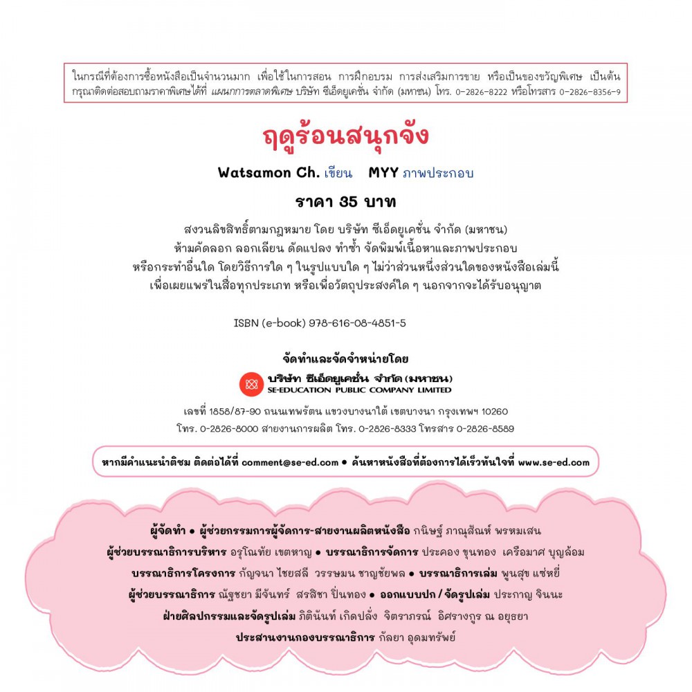 คุณพระอาทิตย์และคุณก้อนเมฆต่างมองไปยังผู้คนที่ออกมาใช้ชีวิตกลางแจ้งในฤดูร้อน ไม่ว่าจะเป็นเด็ก ๆ วิ่งเล่นอย่างร่าเริง บางคนออกกำลังกายพร้อมรับแดดอ่อน ๆ บางครอบครัวมาปิกนิกใต้ร่มไม้ยามบ่าย แถมยังมีผลไม้แสนอร่อยมากมายอีกด้วย จะว่าไปฤดูร้อนนี่ดีจังเลย