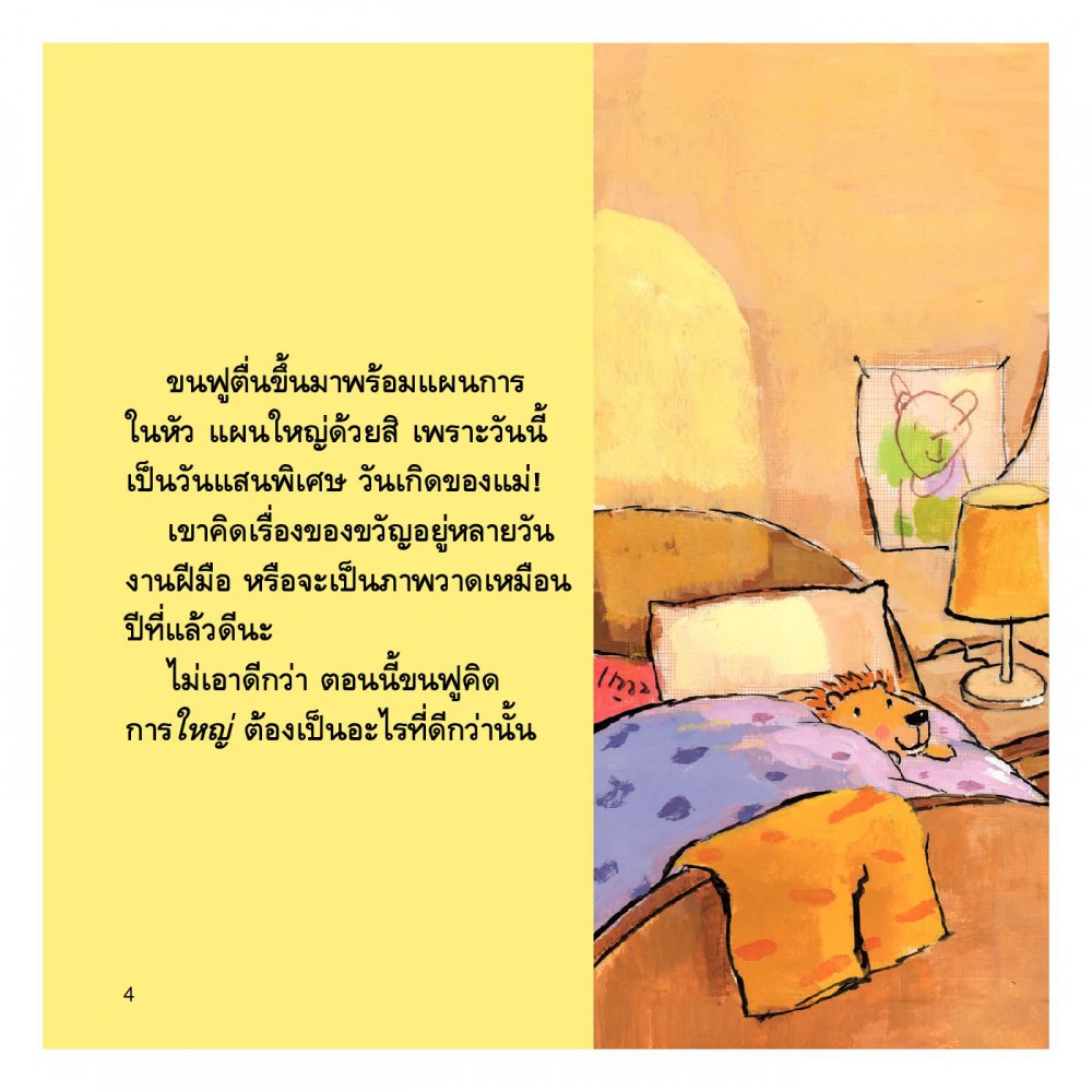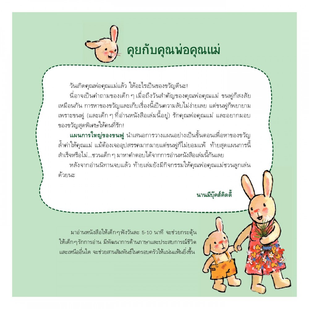วันนี้วันเกิดของแม่ ขนฟูวางแผนจะไปหาของขวัญมาให้ ของขวัญอยู่ในป่า ขนฟูต้องเดินทางไกล ขาไปไม่มีปัญหา แต่ขากลับนี่สิ ยากกว่าที่คิดไว้ แล้วขนฟูจะได้ของขวัญกลับมาให้แม่ไหมนะ