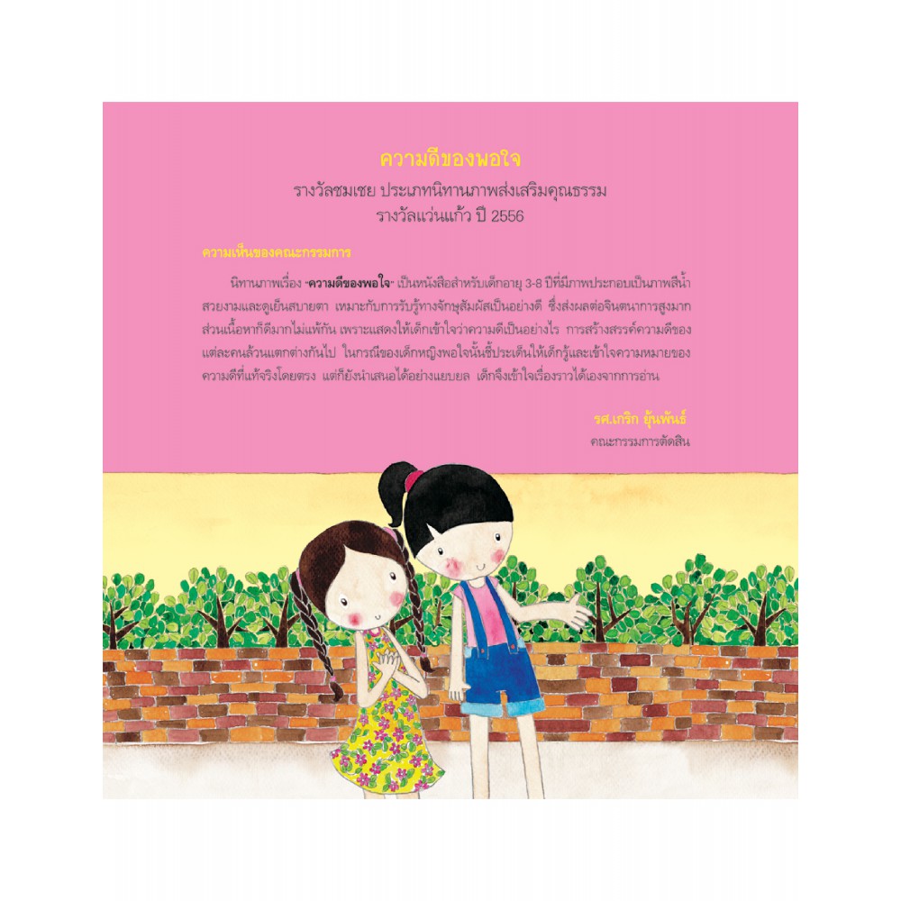 พบกับนิทานภาพแสนสนุก เรื่องราวของ "ความดีของพอใจ" เด็กหญิงพอใจบังเอิญโยนลูกบอลไปโดนแมวบนต้นไม้จนตกลงมา คุณยายเจ้าของแมวเข้าใจผิดว่าเธอช่วยมันไว้ พอใจจะบอกความจริงไหมนะ? ติดตามหาคำตอบพร้อมกันได้แล้วในเล่ม นอกจากให้ความเพลิดเพลินแล้วเด็กๆ ยังจะได้เรียนรู้เรื่องของความซื่อสัตย์และการทำความดีอีกด้วย