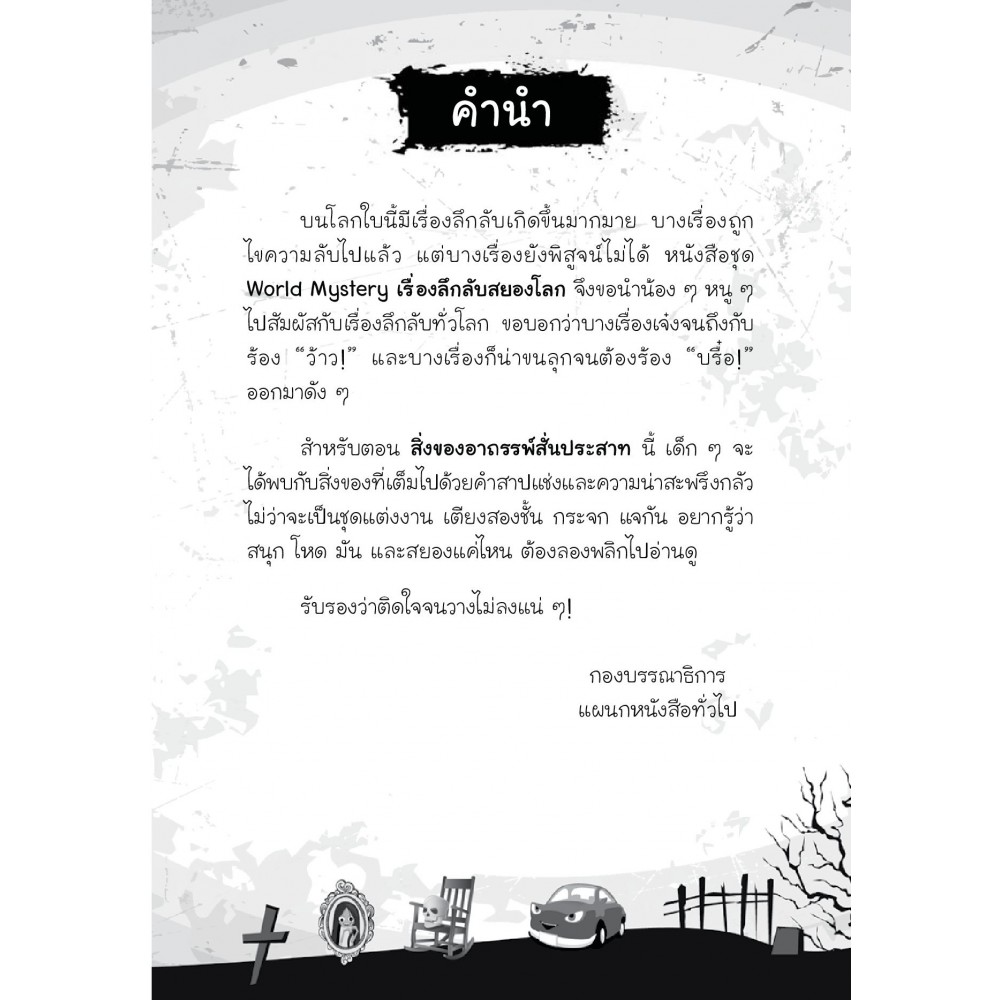 ใครชอบเรื่องลี้ลับมาทางนี้! นี่คือหนังสือที่รวมสิ่งของซึ่งเต็มไปด้วยเรื่องราวอาถรรพ์จากทั่วทุกมุมโลก มีทั้งหมด 25 เรื่อง อาทิ เพลงมรณะกลูมีซันเดย์ ที่ใครได้ฟังจะต้องรู้สึกหดหู่และฆ่าตัวตาย ต้นโอ๊กล่ามโซ่แห่งเมืองสแตฟฟอร์ดไชร์ ที่มีโซ่ล่ามไว้ตามกิ่งก้านมานานกว่าหลายร้อยปี เพราะมีหญิงขอทานนางหนึ่งสาปแช่งว่า เมื่อใดที่กิ่งโอ๊กเก่าแก่ของที่นี่ตกสู่พื้นดิน คนในตระกูลเจ้าของต้นโอ๊กจะต้องตาย และอีกมากมายหลายเรื่องที่จะทำให้คุณขวัญผวา นำเสนอพร้อมภาพประกอบขาวดำสวยงาม