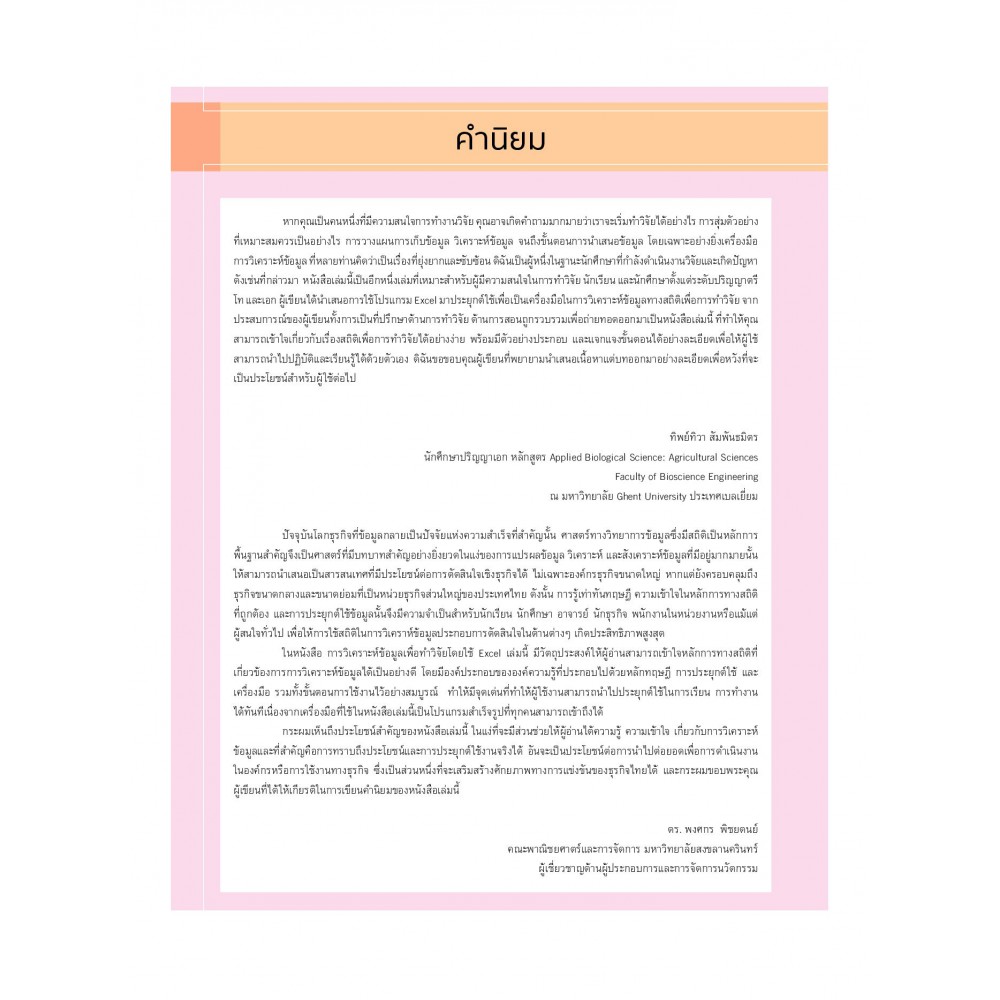 วิเคราะห์ข้อมูลสถิติ และทำงานวิจัยด้วย Excel (Excel Statistic Analysis)