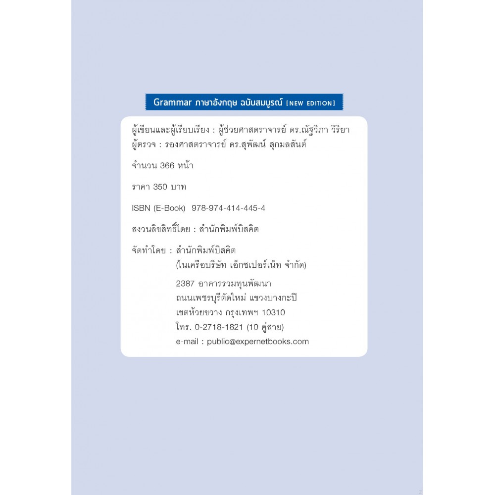 ![Grammar ภาษาอังกฤษ ฉบับสมบูรณ์ [NEW EDITION] Grammar ภาษาอังกฤษ ฉบับสมบูรณ์ [NEW EDITION]](https://www.bookcaze.com/image/cache/catalog/page1_VipVc16735116506430Jqno-583x800.jpg)