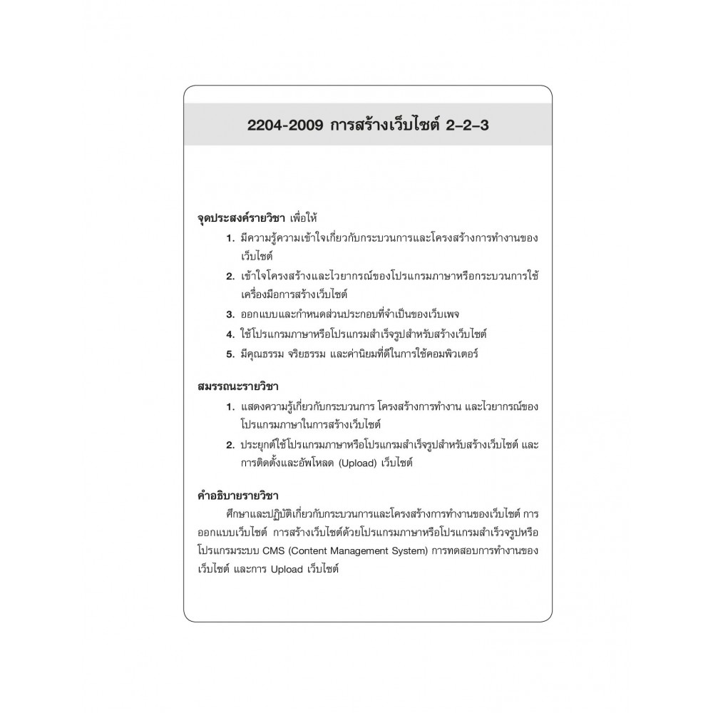 เรียบเรียงตามจุดประสงต์รายวิชา สมรรถนะรายวิชา และคำอธิบายรายวิชา หลักสูตรประกาศนียบัตรวิชาชีพ (ปวช.) พุทธศักราช 2556 ของสำนักงานคณะกรรมการการอาชีวศึกษา กระทรวงศึกษาธิการ