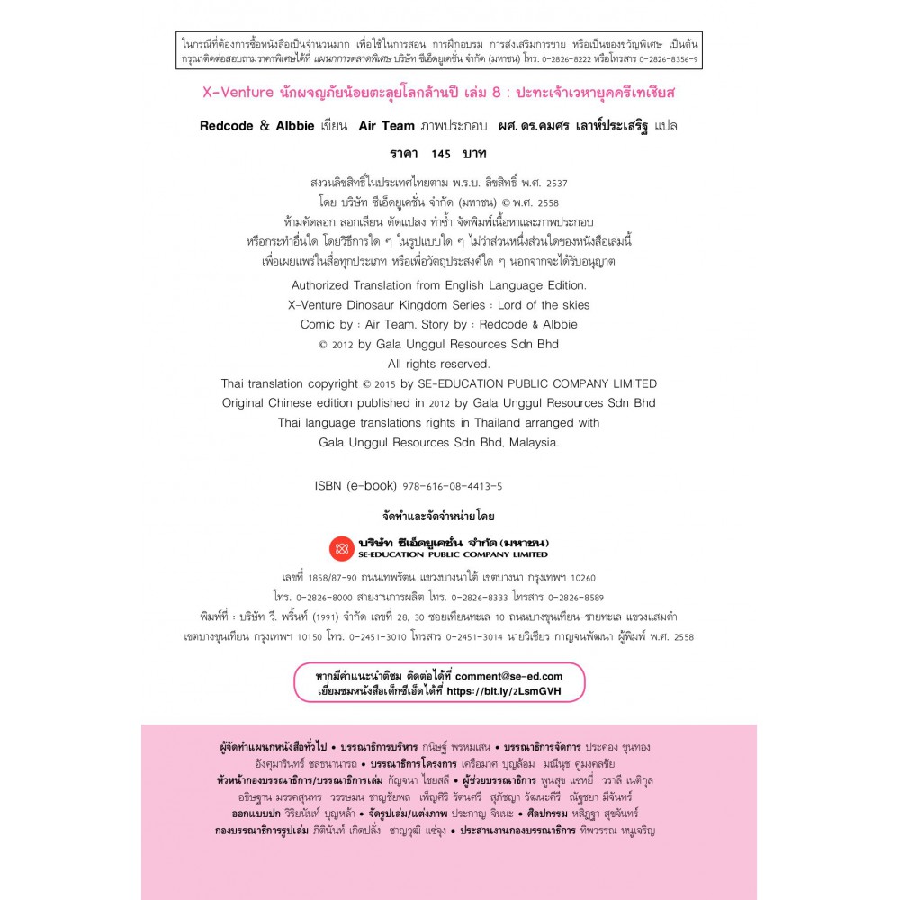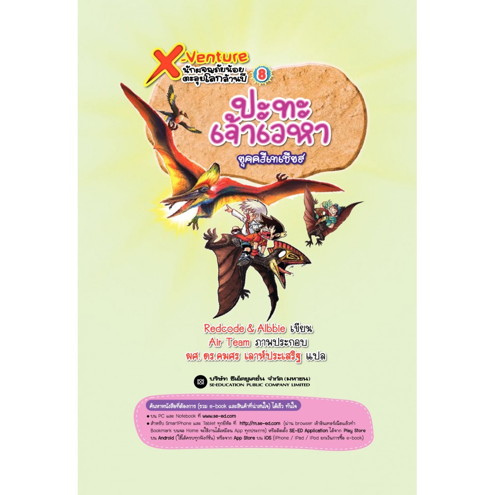 ทีมสำรวจ X-Venture ยังคงวนเวียนอยู่ในป่ายุคครีเทเชียส แถมเสบียงก็จวนจะหมด เรน ฌอน และสโตนจึงต้องไปช่วยกันหาอาหาร ออกตระเวนตั้งแต่ในป่าจนเตลิดไปถึงกลางมหาสมุทร ระหว่างทางนอกจากจะหนีตายจากพวกไดโนเสาร์แล้ว ยังผจญกับฝูงเทอโรซอร์ตัวยักษ์นานาชนิด ต่อสู้กันเฉียดตายหลายต่อหลายครั้ง แต่ในนาทีวิกฤตนั้นกลับมีสิ่งไม่คาดคิดเกิดขึ้น! เกิดอะไรขึ้นกันนะ? ติดตามหาคำตอบพร้อมกันได้ในเล่ม