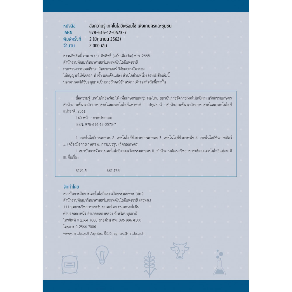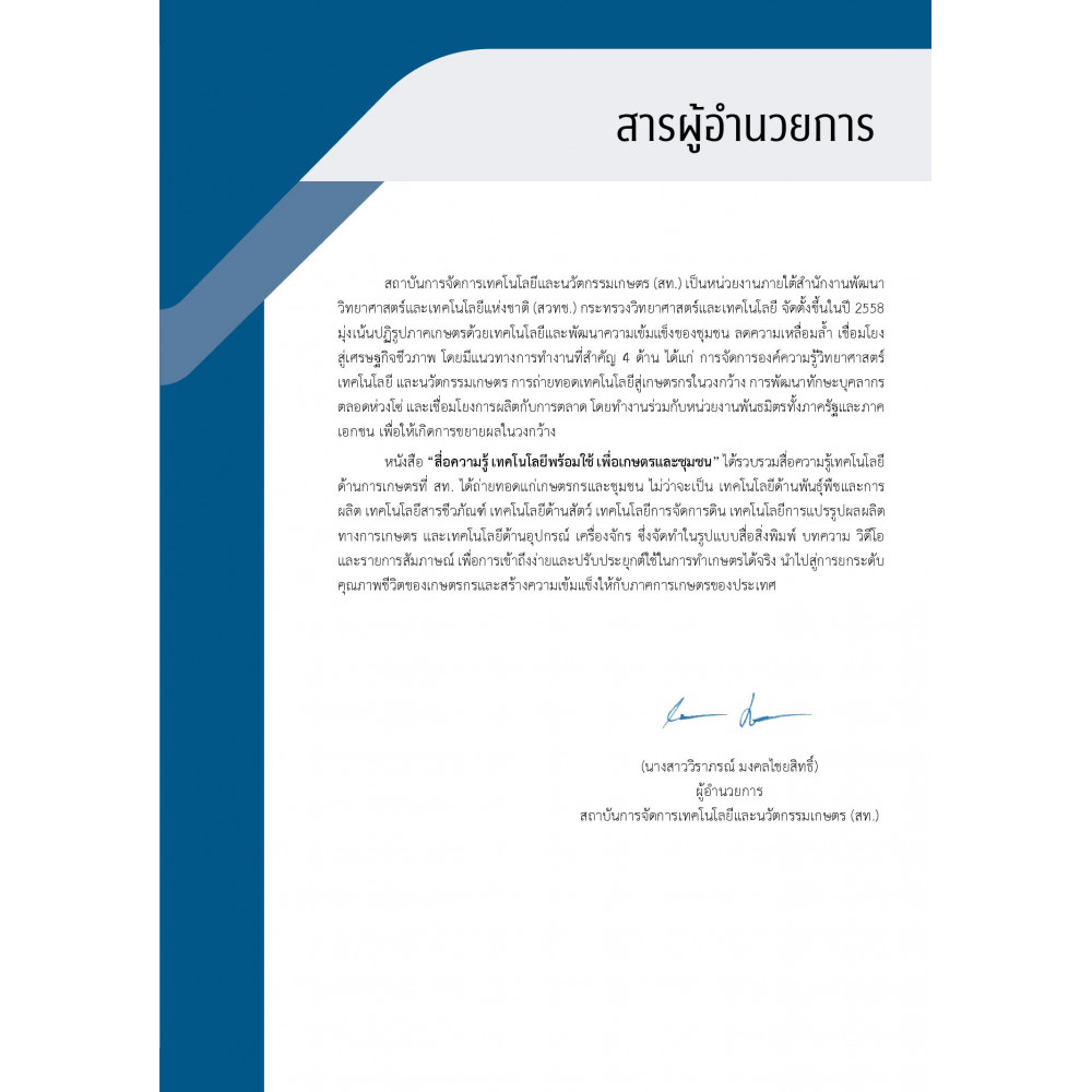หนังสือ “สื่อความรู้ เทคโนโลยีพร้อมใช้ เพื่อเกษตรและชุมชน” ได้รวบรวมสื่อความรู้เทคโนโลยี