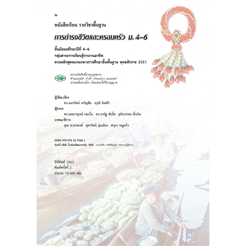หนังสือเรียนรายวิชาพื้นฐานการดำรงชีวิตและครอบครัว ชั้นมัธยมศึกษาปีที่ 4-6