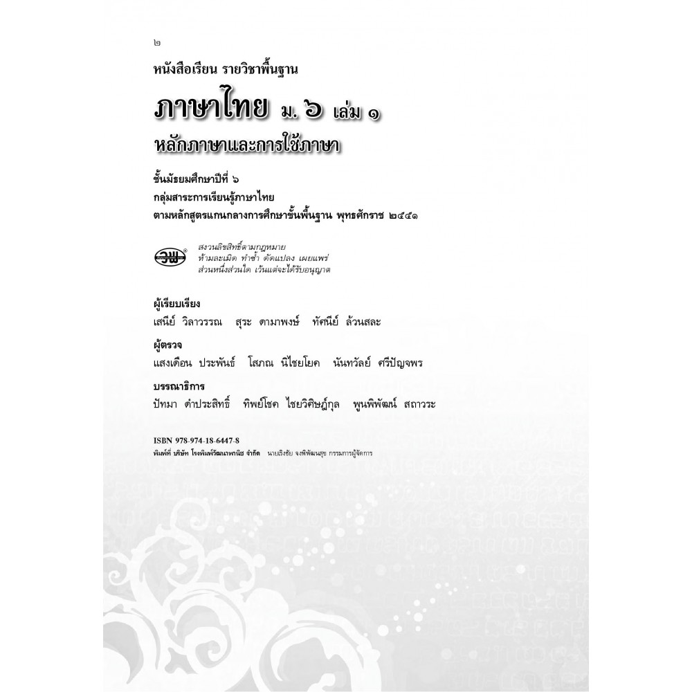 สื่อการเรียนรู้ หลักสูตรแกนกลาง แบบเรียนภาษาไทย ม.6 เล่ม 1 (ฉบับทบทวน)