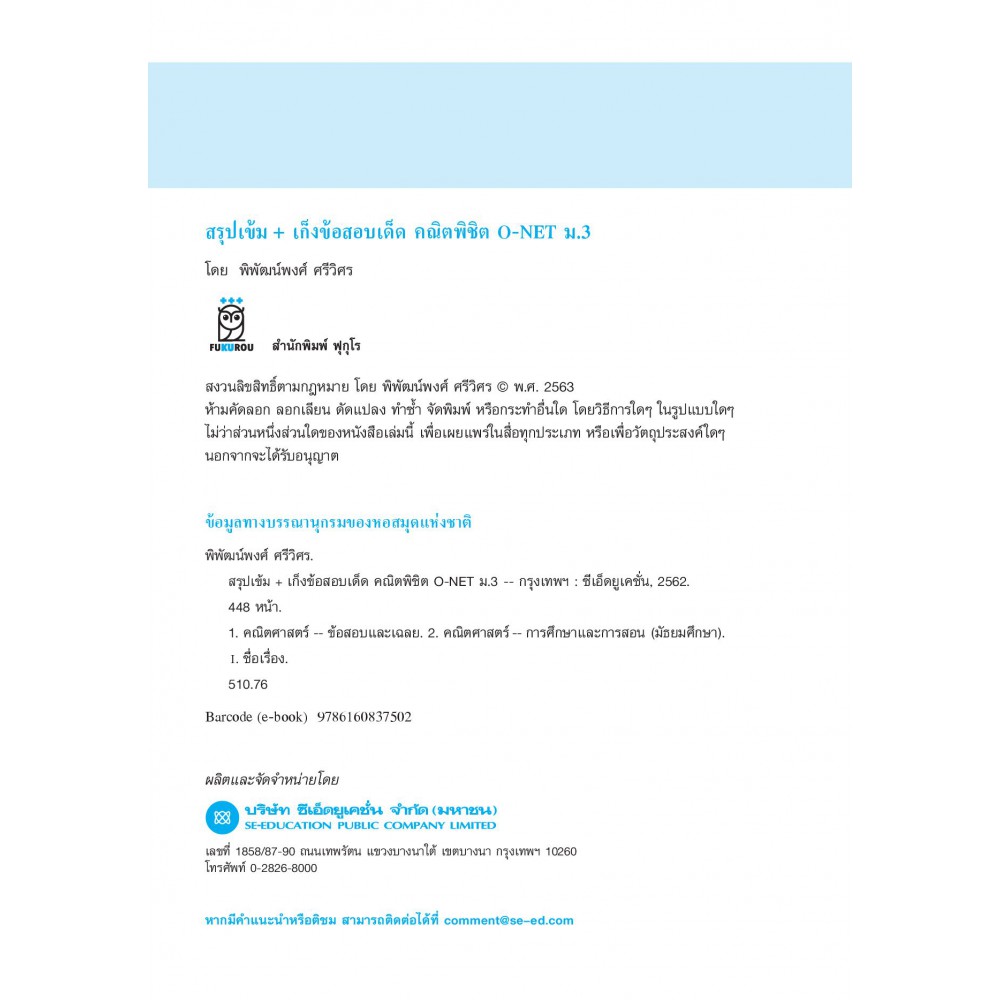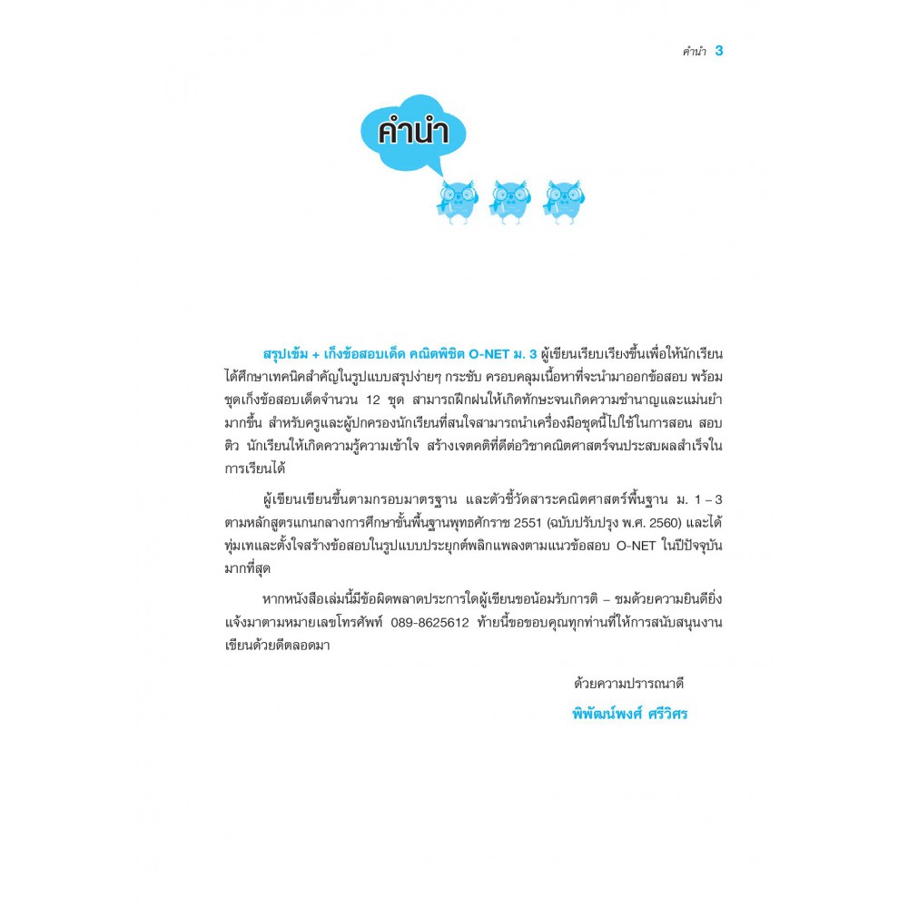 สรุปเข้ม + เก็งข้อสอบเด็ด คณิตพิชิต O-NET ม.3