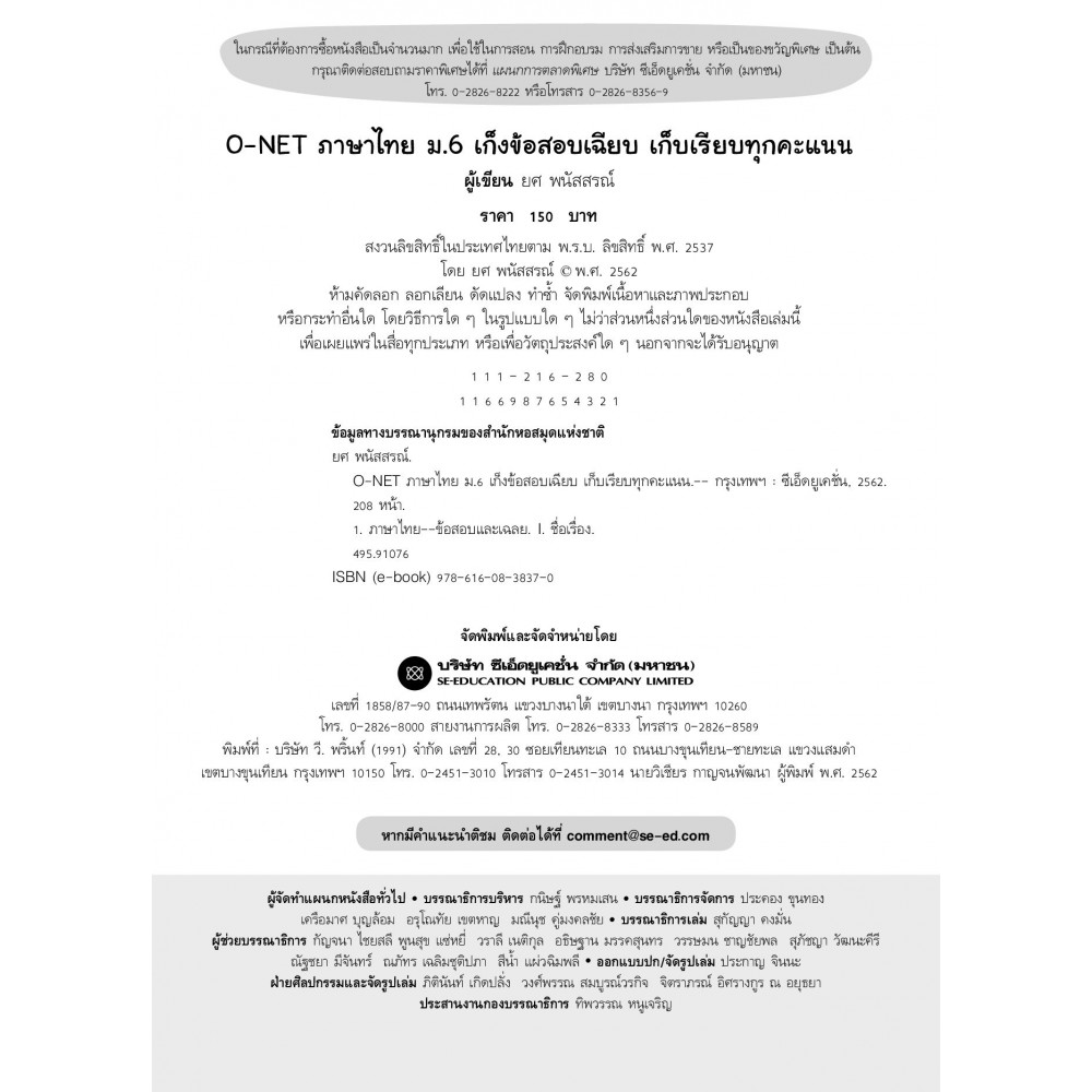 O-NET ภาษาไทย ม.6 เก็งข้อสอบเฉียบ เก็บเรียบทุกคะแนน