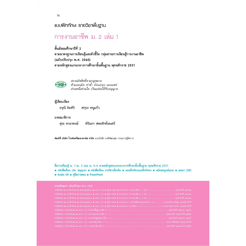 แบบฝึก การงานอาชีพฯ ม.2 เล่ม 1