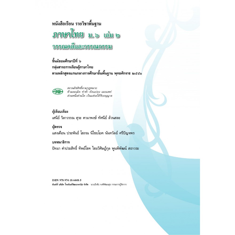 แบบเรียน รายวิชาพื้นฐาน ภาษาไทย วรรณคดีและวรรณกรรม ม.6 เล่ม 2