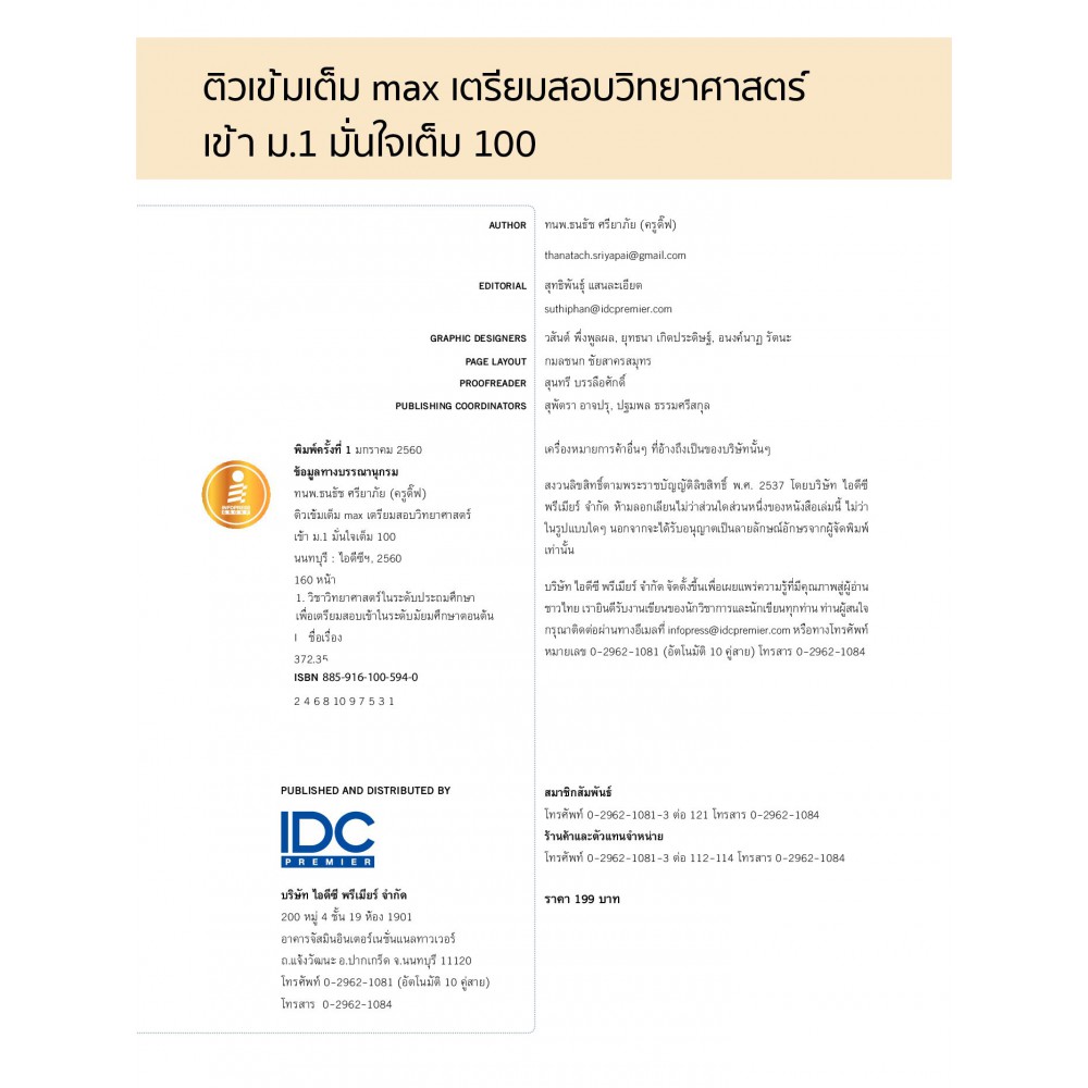ติวเข้มเต็ม max เตรียมสอบวิทยาศาสตร์ เข้า ม.1 มั่นใจเต็ม 100