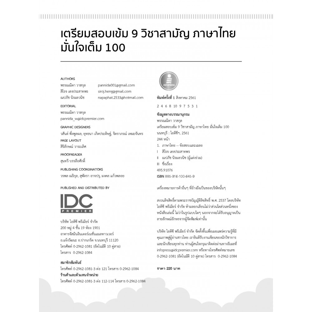 เตรียมสอบเข้ม 9 วิชาสามัญ ภาษาไทย มั่นใจเต็ม 100
