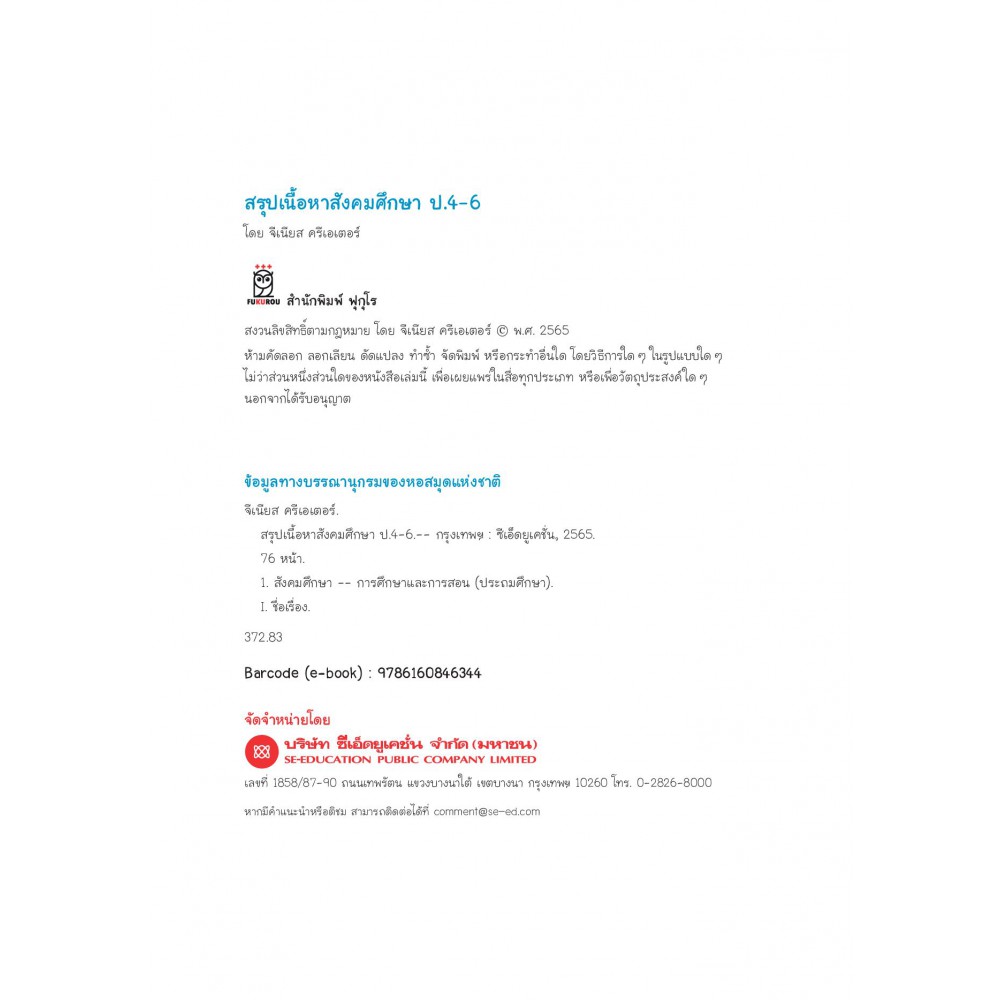 สรุปเนื้อหาสังคมศึกษา ป.4-6 เล่มนี้ รวบรวมคอนเซปต์สำคัญๆ ที่พบบ่อยในข้อสอบวิชาสังคมศึกษา ระดับประถมปลาย ให้อยู่ในรูปของชีตสรุปลายมือ 4 สีสดใส เพื่อให้ง่ายต่อการเข้าใจ จดจำ และนำไปใช้ เนื้อหาครบถ้วนทั้ง 5 สาระการเรียนรู้ ได้แก่ ศาสนา หน้าที่พลเมือง เศรษฐศาสตร์ ภูมิศาสตร์ และประวัติศาสตร์ ช่วยย่นระยะเวลาในการอ่าน เหมาะกับการอ่านทบทวนก่อนสอบและเตรียมตัวสอบเข้า ม.1 เสริมความมั่นใจของน้องๆ ระดับประถมปลายได้ง่ายๆ ด้วยตัวเอง