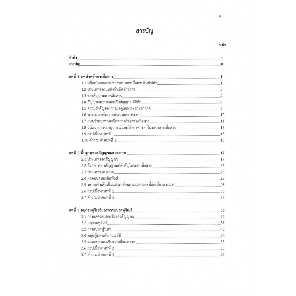 เนื้อหาในตำราเล่มนี้ เริ่มต้นอธิบายตั้งแต่แบบจำลองการสื่อสาร สัญญาณและระบบ สเปกตรัมของสัญญาณ อนุกรมฟูริเยร์ การแปลงฟูริเยร์ ความน่าจะเป็นและตัวแปรสุ่ม การมอดูเลตและการดีมอดูเลตแบบแอนะลอก การมอดูเลตและการดีมอดูเลตแบบดิจิทัล เครือข่ายการสื่อสารกับแบบจำลองโอเอสไอ เทคโนโลยีการสื่อสาร พารามิเตอร์และแบบจำลองชั้นไอโอโนสเฟียร์ การสืบค้นและการประมวลผลข้อมูลด้านอวกาศพารามิเตอร์ที่บ่งชี้สภาวะการเปลี่ยนแปลงชั้นไอโอโนสเฟียร์และเว็บไซต์ที่เกี่ยวข้อง การทำนายสภาพอวกาศความผิดปกติสภาพอวกาศและผลกระทบที่เกิดขึ้น รวมถึงการปรับปรุงการระบุพิกัดแบบเรียลไทม์ที่แม่นยำขึ้น