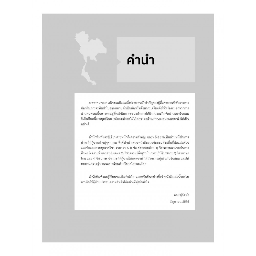 แนวข้อสอบการสอบบรรจุเข้ารับราชการส่วนท้องถิ่น ภาค ก ครบทั้ง 4 วิชา คือ วิชาความสามารถในการศึกษา วิเคราะห์และสรุปเหตุผล, วิชาความรู้พื้นฐานในการปฏิบัติราชการ, วิชาภาษาไทย และวิชาภาษาอังกฤษ มีเฉลยพร้อมคำอธิบายอย่างละเอียดทุกข้อ พร้อมเทคนิคการทำข้อสอบ เหมาะสำหรับการสอบเข้ารับราชการ พนักงานราชการ และลูกจ้างส่วนท้องถิ่นทุกตำแหน่ง