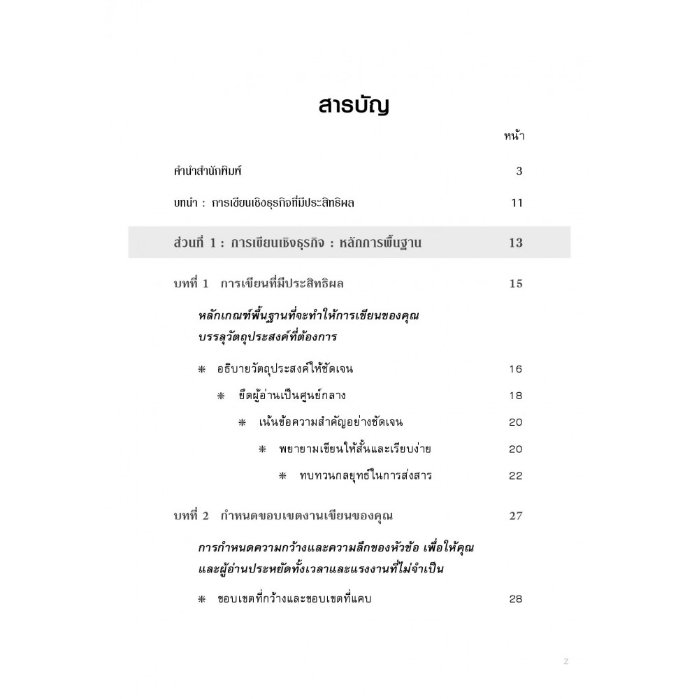 " หนังสือนี้จะชี้ให้เห็นถึงวิธีการเขียนเชิงธุรกิจอย่างมีประสิทธิผล ซึ่งอาศัยหลักพื้นฐานเพียงไม่กี่ประการ เริ่มตั้งแต่การโน้มน้าวและจูงใจผู้อ่าน การเขียนเอกสารให้กระชับ ชัดเจน และตรงตามความต้องการของผู้อ่าน ตลอดจนเรียนรู้การสื่อสารข้อความได้อย่างมีประสิทธิผล ซึ่งหากคุณสามารถนำมาปรับใช้ได้ คุณก็จะสามารถจัดการกับงานเขียนรูปแบบต่างๆ ที่ผ่านเข้ามาได้อย่างมีประสิทธิภาพ