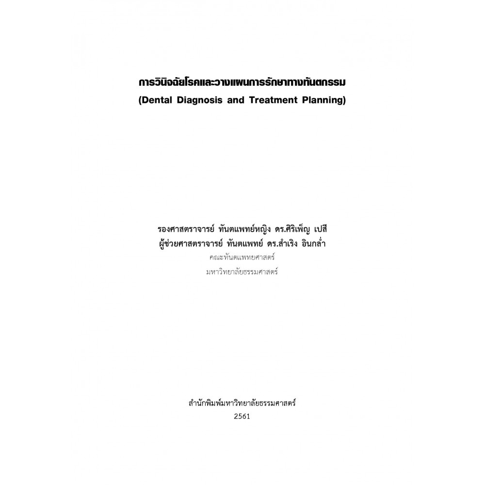 การเรียบเรียงตำราเรื่อง การวินิจฉัยโรคและวางแผนการรักษาทางทันตกรรม เล่มนี้ มีจุดเริ่มต้นจากการขาดแคลนตำราภาษาไทยเกี่ยวกับการวางแผนการรักษาทางทันตกรรมประกอบกับการสอบเพื่อขึ้นทะเบียนใบประกอบวิชาชีพทันตกรรมได้กำหนดให้การตรวจวินิจฉัยโรคและวางแผนการรักษาแบบองค์รวมเป็นส่วนหนึ่งของการสอบประเมินทักษะทางวิชาชีพ การฝึกทักษะการตรวจวินิจฉัยโรคและวางแผนการรักษาให้ชำนาญนั้น นอกจากการฝึกในผู้ป่วยจริงที่มากพอแล้ว หากนักศึกษาได้เห็นตัวอย่างกรณีศึกษาหลายๆ กรณีจากหนังสือหรือตำรา ก็จะเป็นการเพิ่มประสบการณ์การเรียนรู้ของนักศึกษาได้อีกด้วย ดังนั้นตำราเล่มนี้จึงเรียบเรียงขึ้นเพื่อใช้ประกอบในการเรียนการสอนวิชาการวางแผนการรักษาทางทันตกรรมของนักศึกษทันตแพทย์ชั้นปีที่ 4 คณะทันตแพทยศาสตร์ มหาวิทยาลัยธรรมศาสตร์ และยังใช้เป็นแนวทางสำหรับการวินิจฉัยโรคและวางแผนการรักษาทางทันตกรรมเมื่อนักศึกษาขึ้นปฏิบัติงานในคลินิกตรวจวินิจฉัยโรคในชั้นปีที่ 5 และ 6