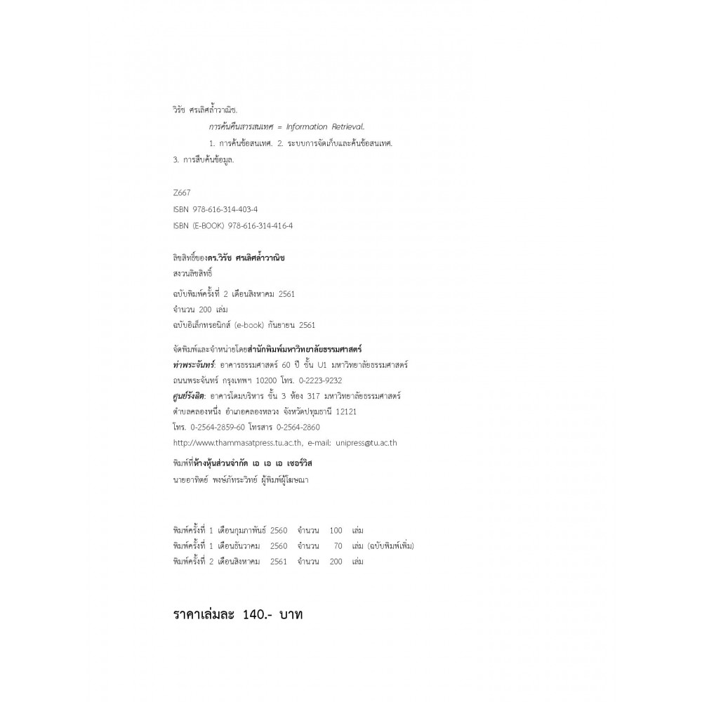 การค้นคืนสารสนเทศ Information Retrieval (พิมพ์ครั้งที่ 2)